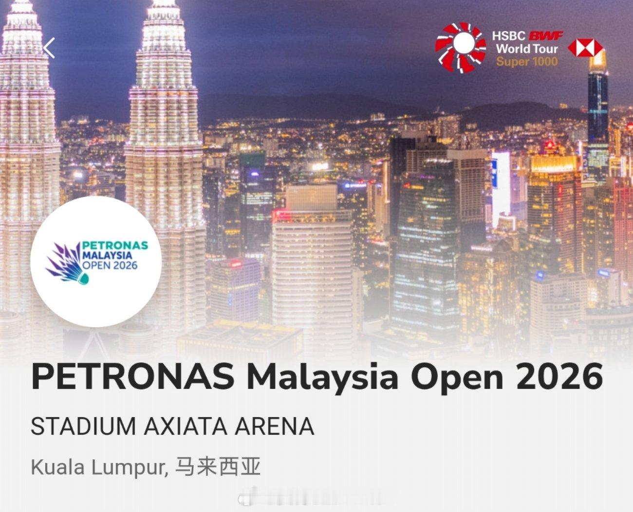 2026年马来西亚羽毛球公开赛比赛时间:1月6日-1月11日地点:马来西亚🇲?