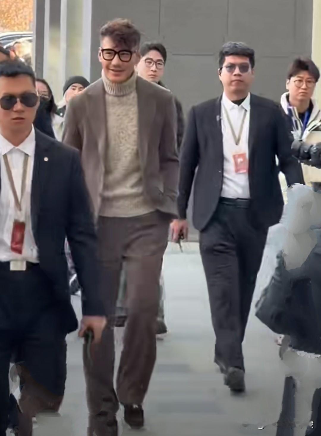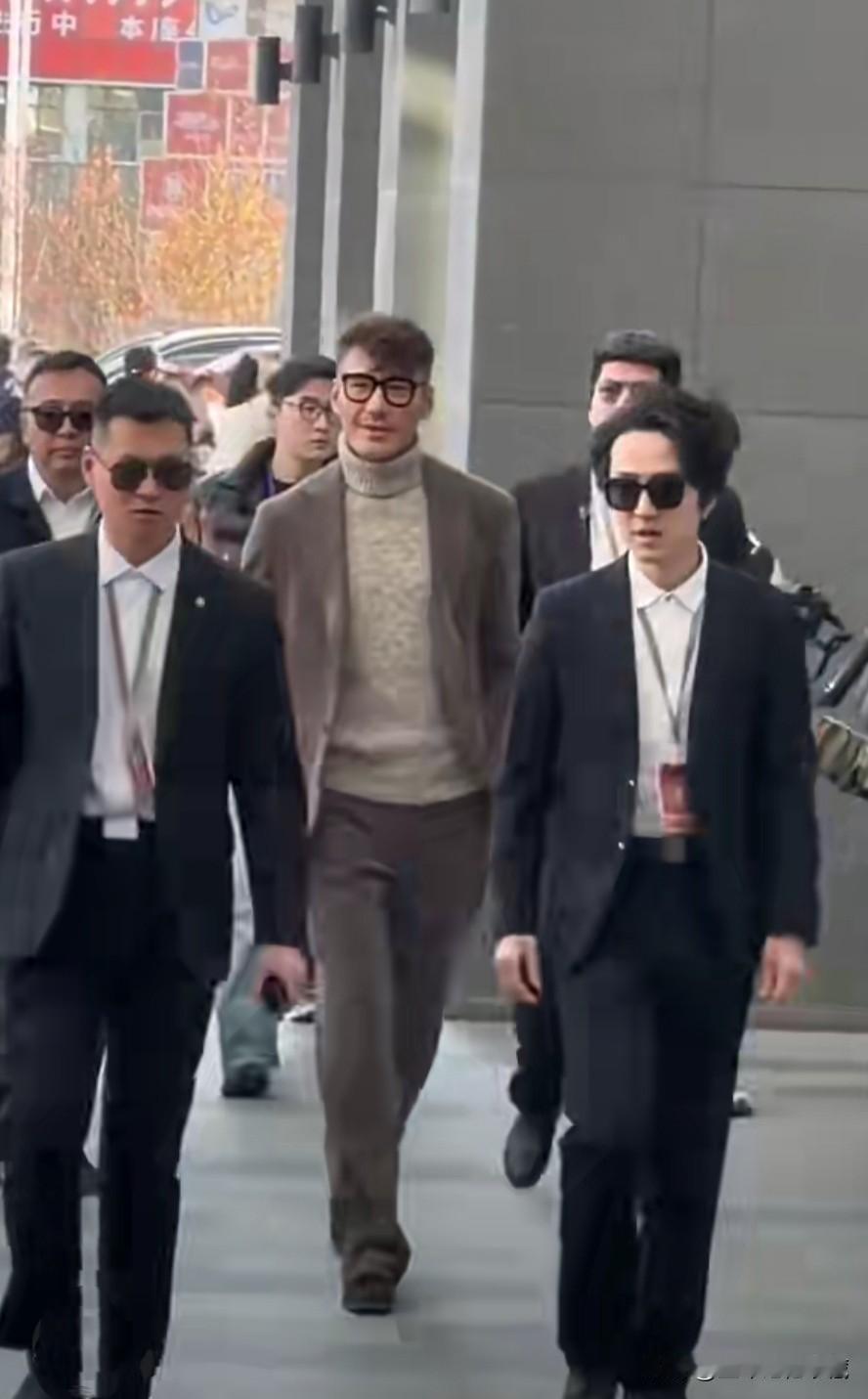 三星同框:最亮眼的就是胖瘦合度,身着桔红色西装的秦昊,但若说帅气还是目若朗星,腕