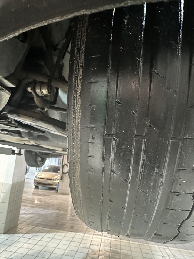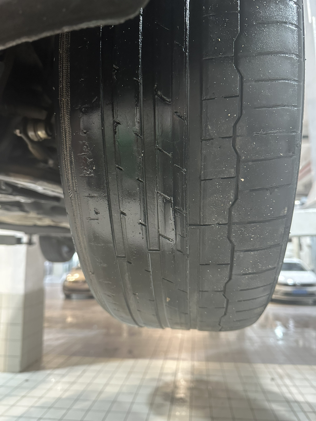 迈腾轮胎异常磨损行驶3.5万公里,出现胎嗓异常,去查看得知四条轮胎异常磨损严重