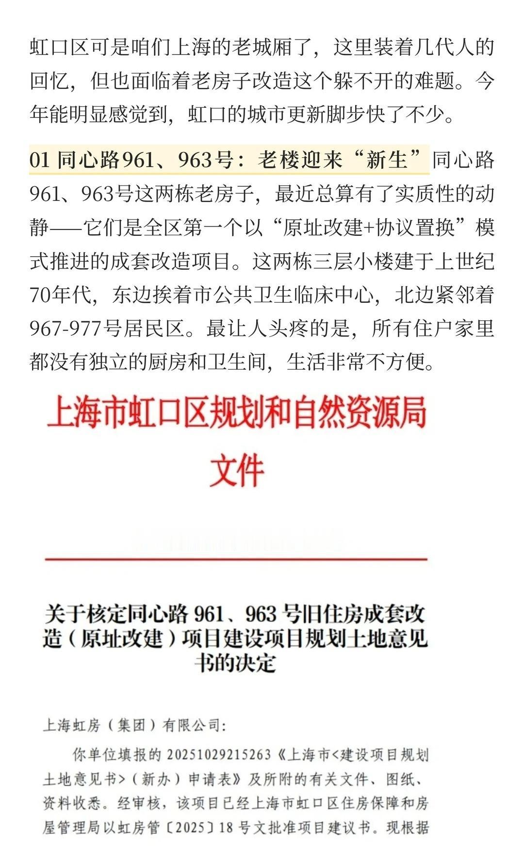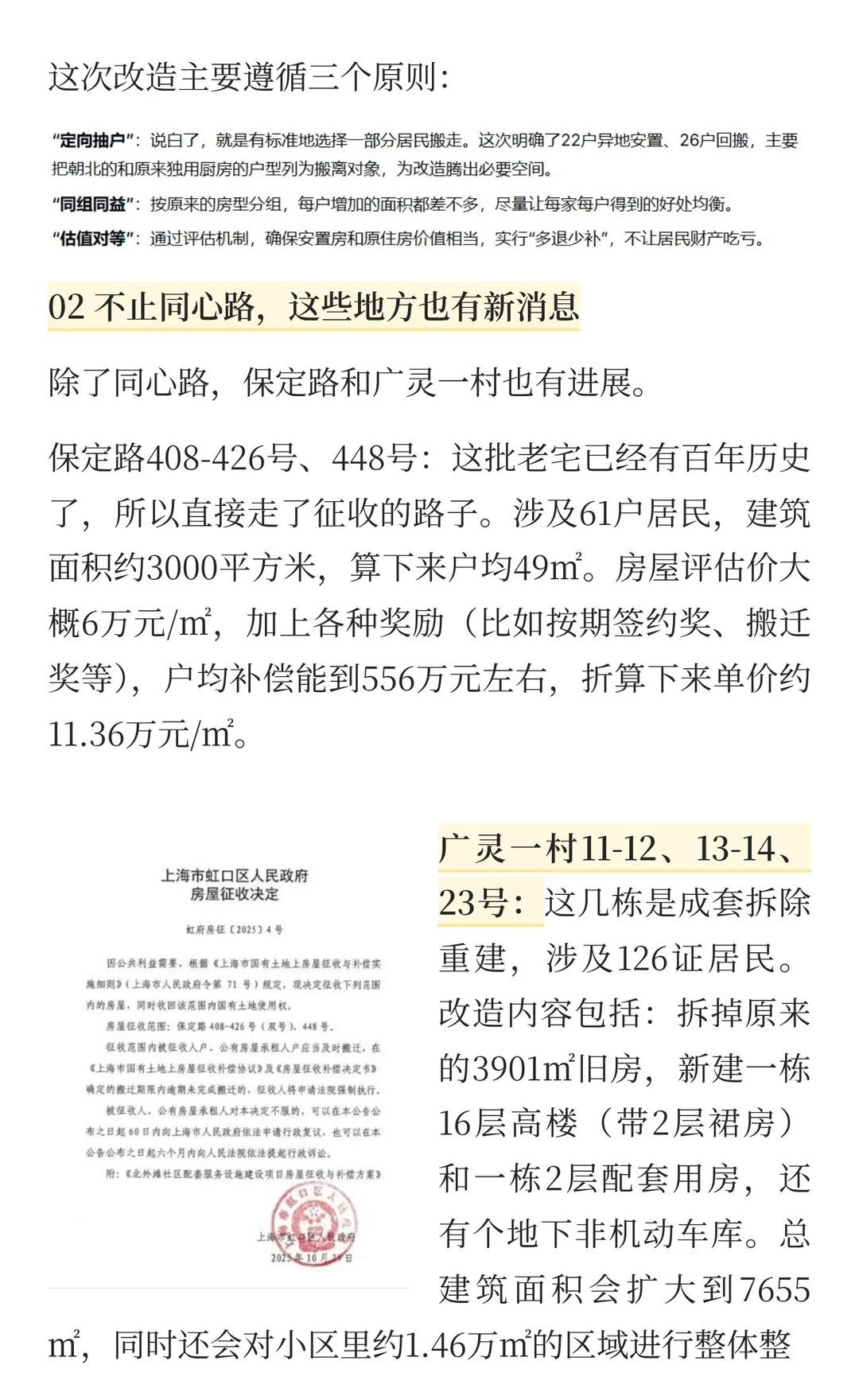 补偿超11万/㎡!上海拆迁加速! 虹口区老城厢面临改造,同心路961、963号成套改造启动,涉及61户居民。保定路408-426号等老宅通过征收或拆除重建,提升居住条件。沪房视界 沪尚房观 拆迁 魔都小谈匠 城中村改造 楼市 城市更新 老城区改造 城市更新旧村改造
