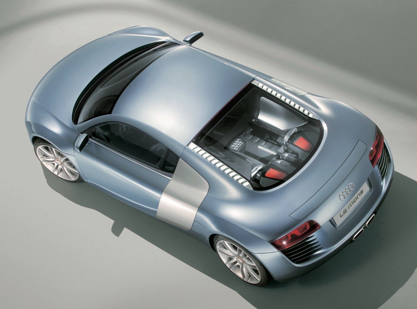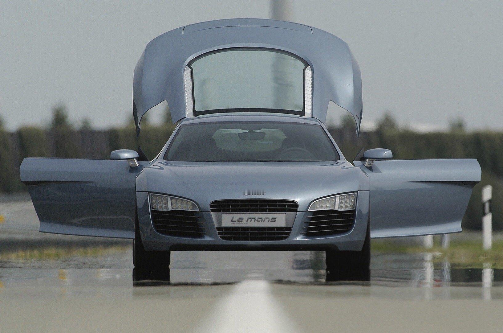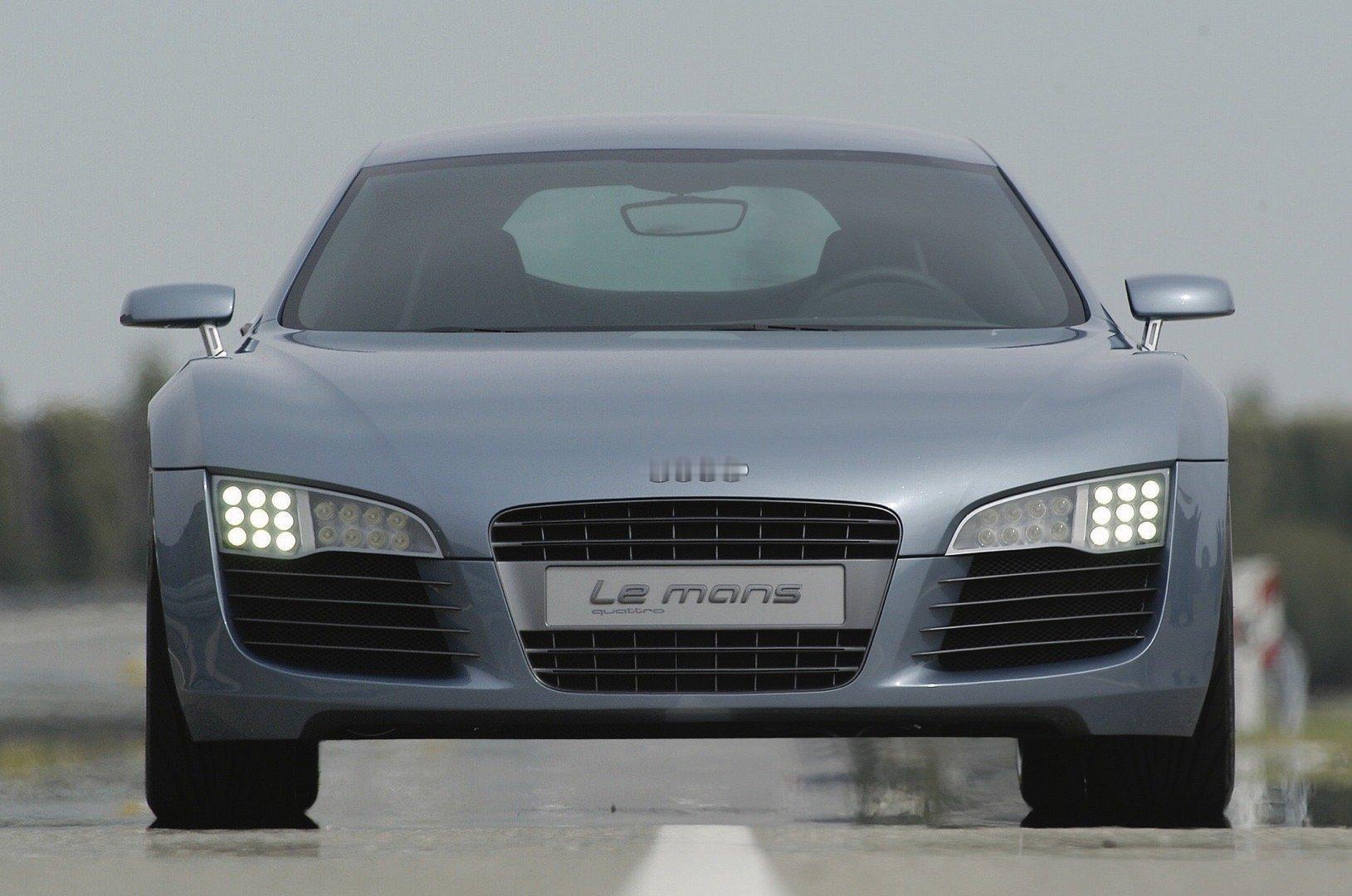 2003年法兰克福车展上,奥迪发布了一款名为Le Mans Quattro的概念车,拥有中置V10引擎布局。外观由弗兰克·兰博蒂设计,流畅的车身线条,水滴形的车顶,还有如拼图般的车身侧部面板。这台Le Mans概念车同时也是奥迪科技的试验场,搭载完全由LED组成的前大灯,与兰博基尼盖拉多共用的奥迪车身架构,以及在当时全新的磁流体自适应阻尼避震器。甚至这台概念车的红色尾灯罩和灯组是分体的。2004年起,这台Le Mans概念车的量产计划获得批准,也就有了后面的奥迪R8。