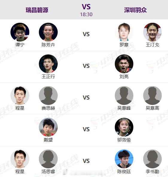 羽超联赛今日晚场【18:30】对阵🆚如下图 羽毛球热点现场