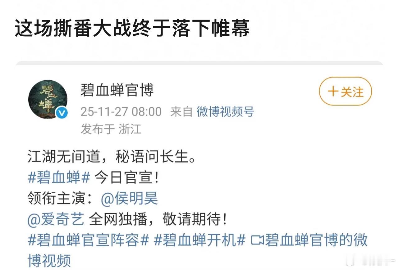 侯明昊碧血蝉开机照《碧血蝉》开机了,侯明昊在开机照中的造型十分吸引眼球!这一部