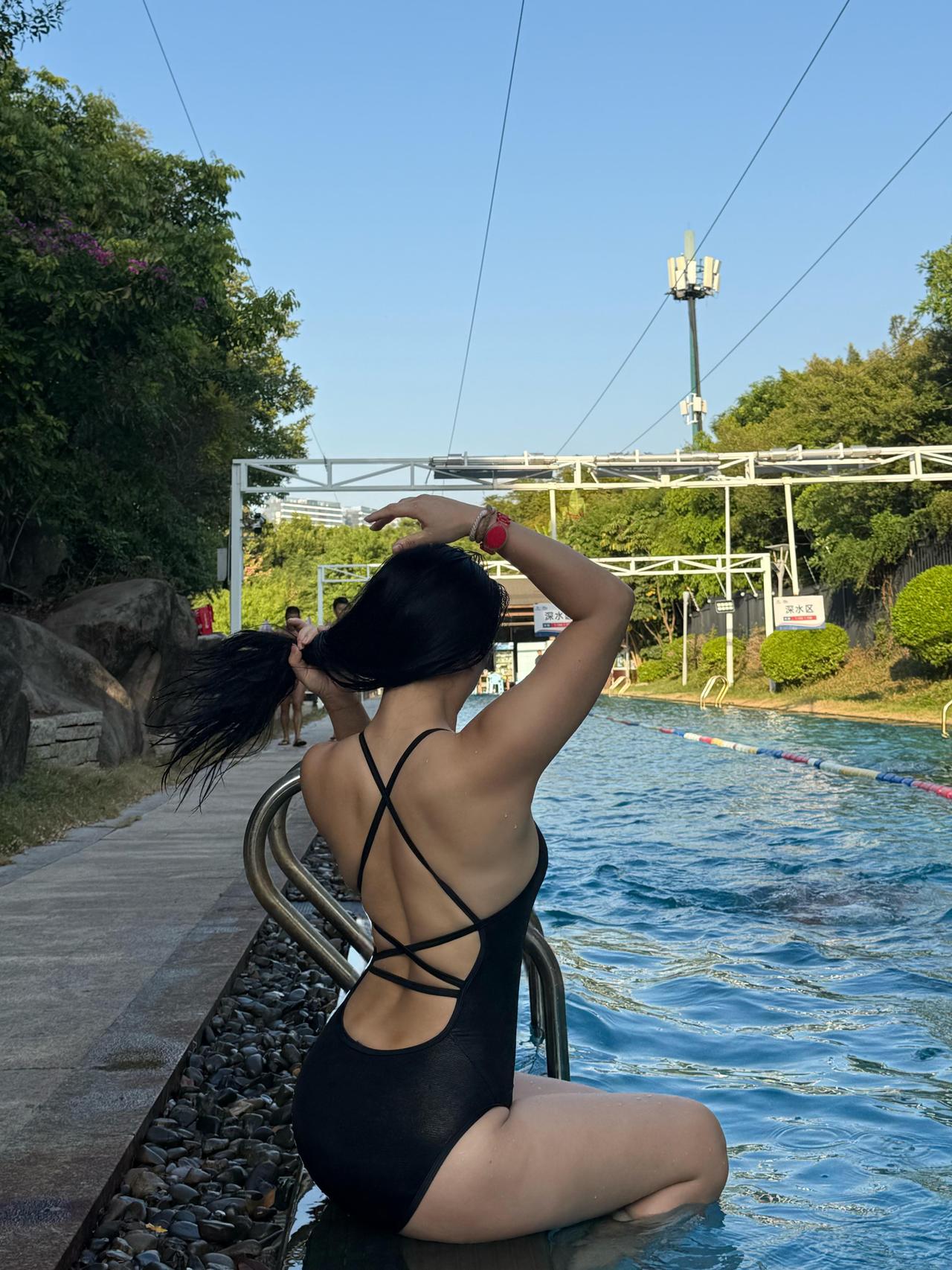 ▫️谁说冬天不能穿泳衣?黑丝绒交叉背款适配所有季节!湿发贴背+暖光滤镜,冷天里的热辣感直接杀疯朋友圈~ ▫️冬泳拍照小心机: 1️⃣慢慢走上扶梯昂首挺胸凹出身材曲线(ps:没化妆转头露出下颚线)😁 2️⃣坐在池边,扎头发/戴泳帽的动态抓拍(露背线条美到失语) 3️⃣举泳帽挡阳光的慵懒pose,冷天里的松弛感直接拿捏 冬天的泳池人少景清,快乐直接翻倍💦
