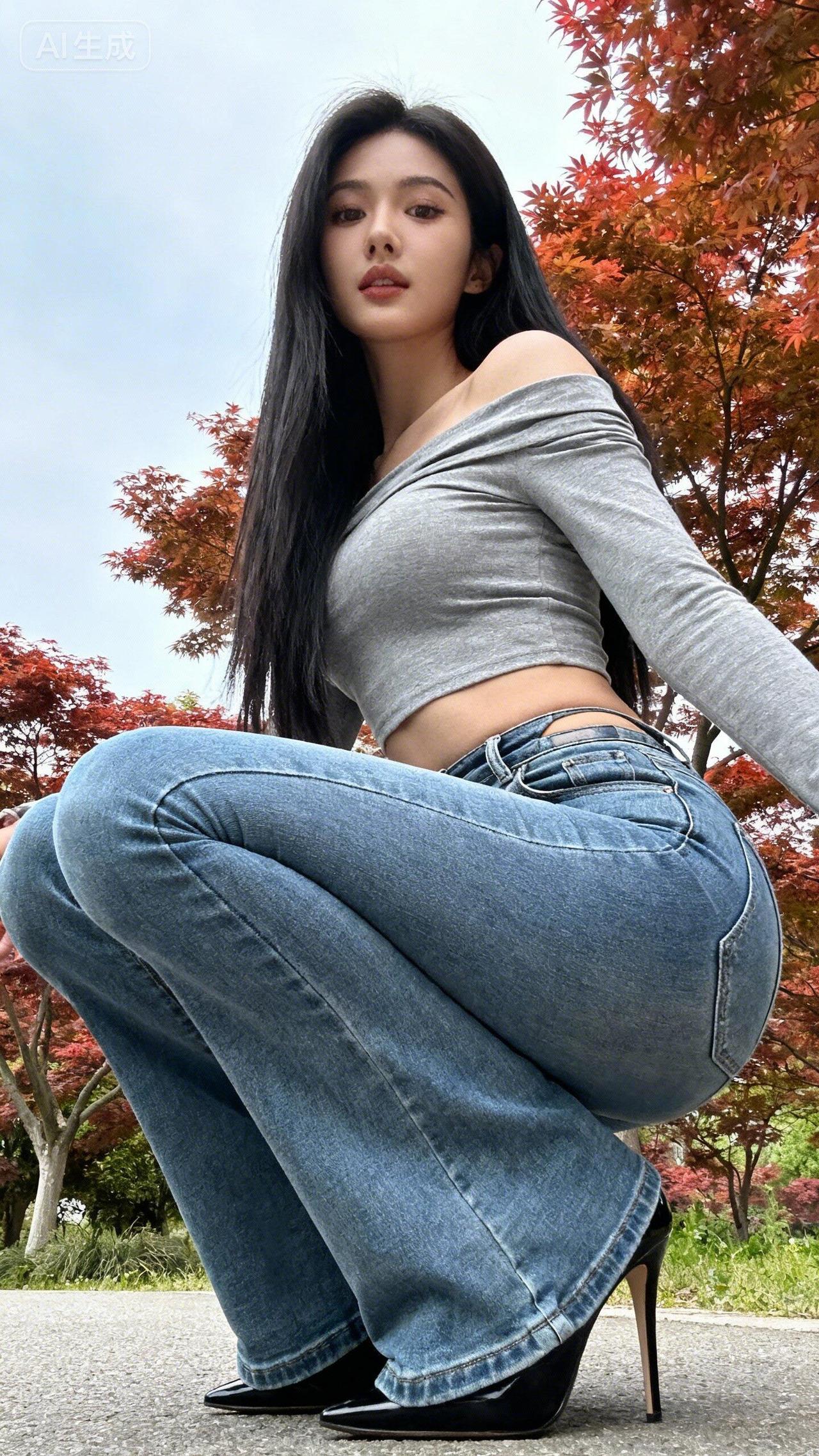 |高腰微喇叭牛仔裤,打造腰臀比,每天都有值得记录的瞬间,美好生活的记录者