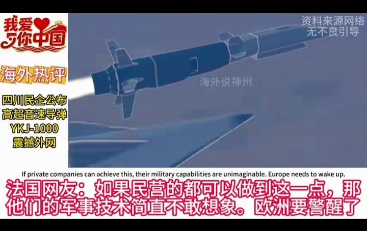 外国网友哀嚎:这还怎么玩?! 四川民营公司制造出高超音速导弹,震撼外网: 名称:YKJ-1000(驭空戟-1000) 1.报价70万元一发 2.成波体弹头,射程1000km 3.高超音速5~7马赫 4.战斗部位300kg 5.具备自动躲避威胁功能 6.可定制 美国网友惊呼,洛克希德.马丁,快醒醒,东大初创公司用白菜价量产高超音速导弹了,西方国防巨头要完蛋了! 德国网友也着急,嫌弃德国军工进步太慢,赶紧创新否则会被甩在身后! 澳大利亚网友表示质疑:初创公司造的导弹比一些国家的军队造的还要好,这不可能吧? 法国网友感叹:民营的都能做到这个地步,他们的军事技术简直不敢想象啊,欧洲醒醒别睡了! 英国网友很沮丧:关键是成本只有1/10,而且还是民营的,这足以改变太平洋的以往的威慑态势了。 日本网友哭丧着脸说:“宣传视频瞄准日本,这太危险了……” 这波操作太溜了,非洲网友赶紧买些回去创业,下一个酋长就是你了。拖鞋军也可以备货了,这玩意不贵比煤气罐强多了,哈哈哈[耶]