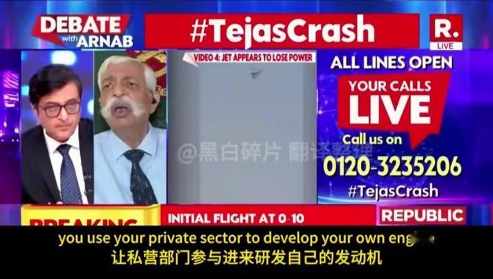 阿三光辉坠机,印度电视台直播连线7位专家讨论解决方案,说我国在航发方面也同样一团