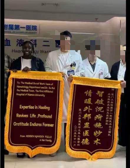 冈比亚留学生是幸运的,如果在他自己国家只有死路一条 厦门大学一名冈比亚留学生因“口腔血泡、右眼出血”来到厦门大学附属第一医院血液科门诊就诊。经检查他随时可能出现生命危险,需立即入院治疗。 厦门大学附属医院苏蕊主任医师医疗组立即接诊介入,启动应急通道,并在第一时间做出判断,病因锁定为急性白血病。 在医院专家团队的努力下留学生各项指标逐渐好转,病情已经得到了控制,目前处于巩固恢复期。 厦门大学附属医院是好样的,对待外国留学生尽心尽力,全院上下一起把留学生的命救了下来,留学生是幸运的,遇到了中国好医生,如果在自己国家只有见阎王。 冈比亚留学生在华治疗白血病的费用整体区间通常在30万 - 200万元,留学生可以报销一部分,冈比亚留学生购买了综合医疗保险。可以赔付上限为40万元,厦门大学也主动协助其对接保险相关事宜,进一步减轻经济压力。 冈比亚留学生要感谢中国对他的照顾,下辈子做牛马也不能忘记。中国大公无私好样的! 医院真好,留学生还送了锦旗!好好珍藏这是荣耀!非洲来华留学生 非洲医疗 留学生就医