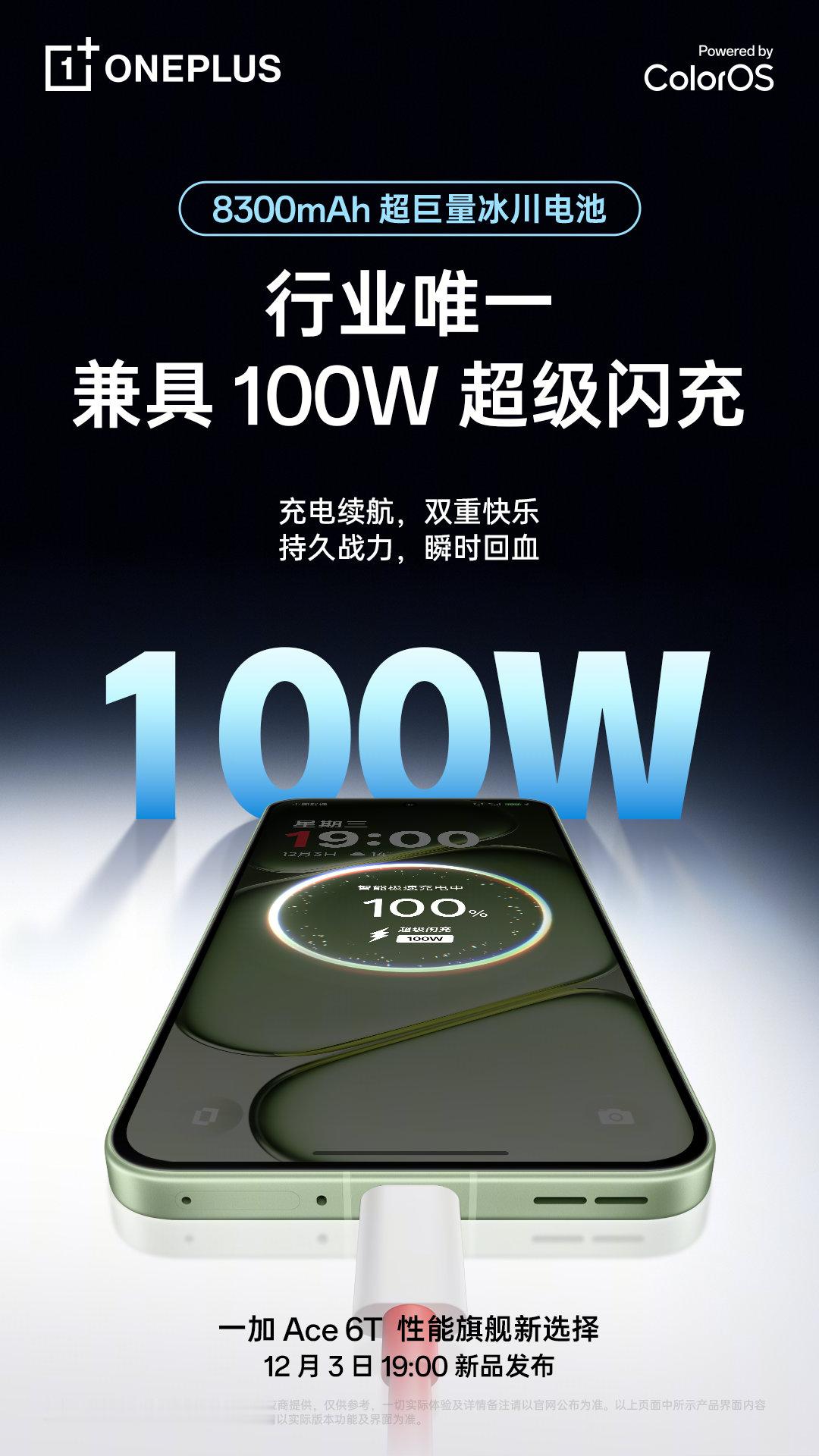【一加Ace6T搭载8300mAh冰川电池】据一加中国区总裁李杰介绍,一加Ac
