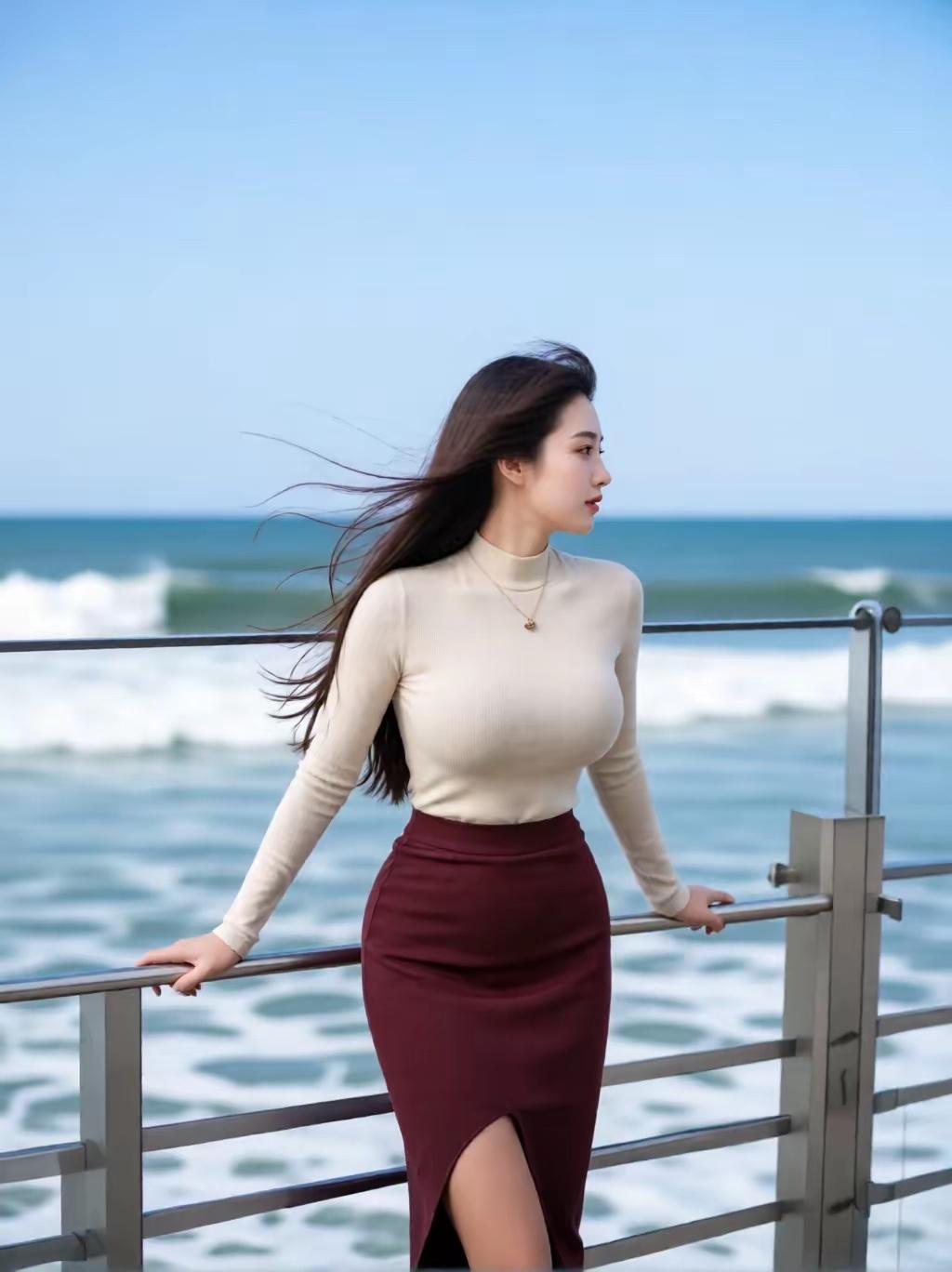 海边漫步真的是超棒的体验!想象一下,一个身着浪漫红裙的少女走在海边,微风轻轻拂过