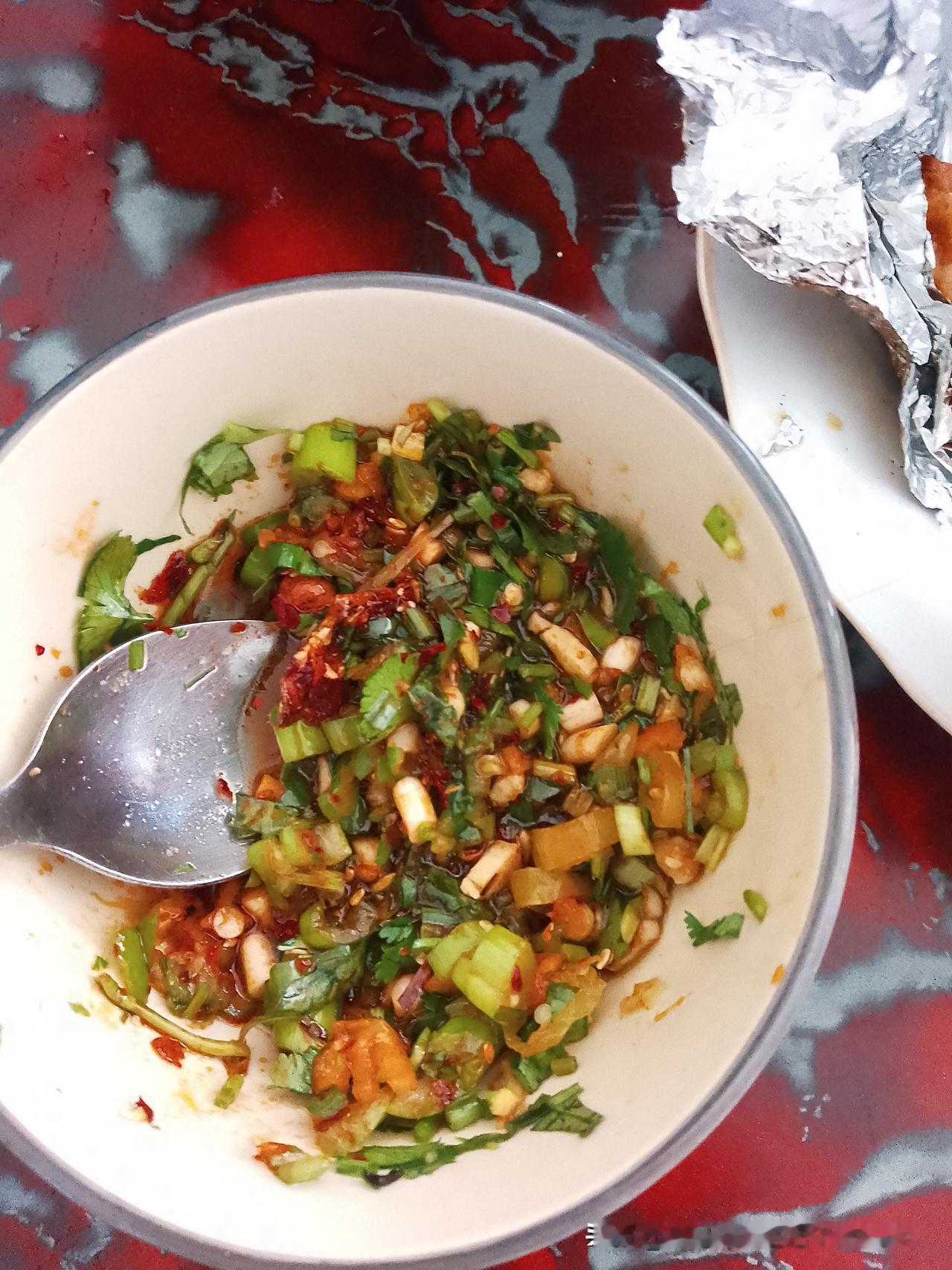 分享一张最近随手拍的照片包烧傣味五花肉,配柠檬傣味蘸水!周末快乐!