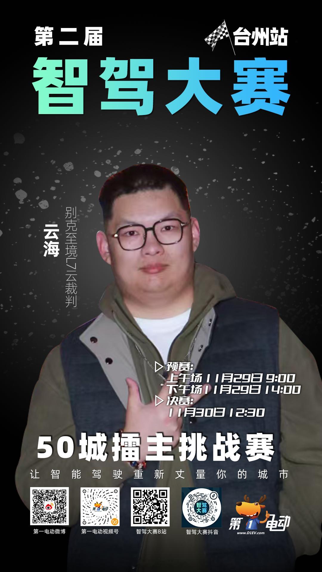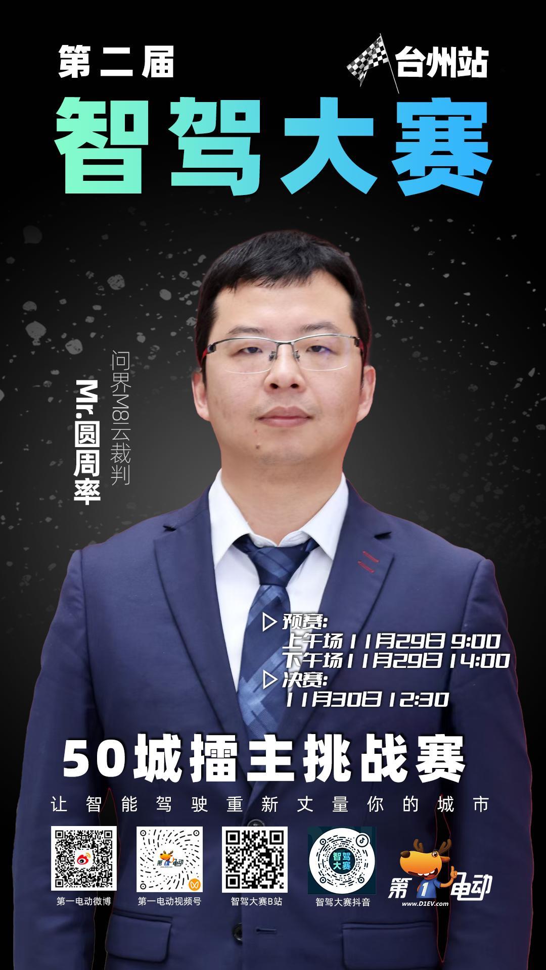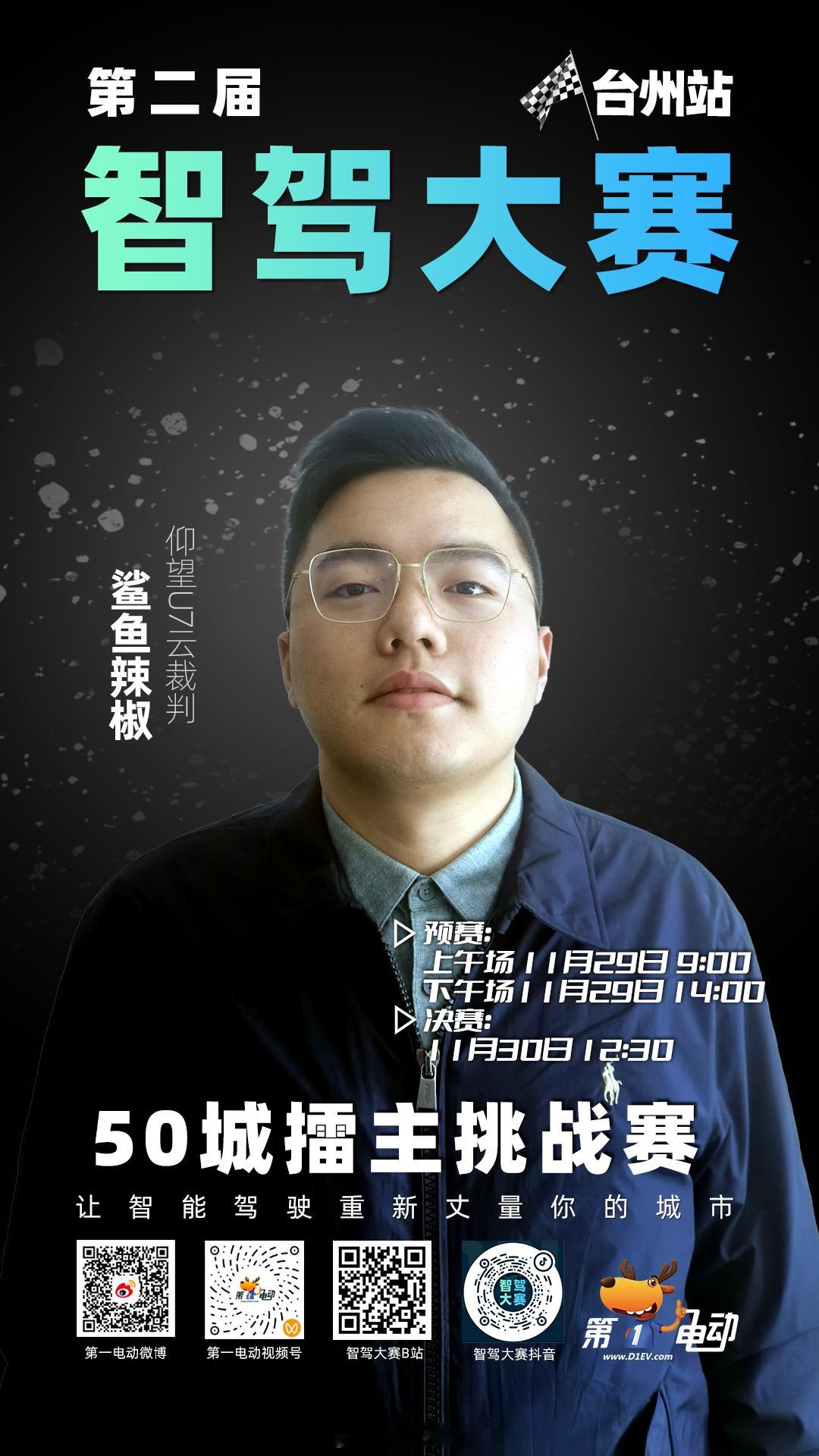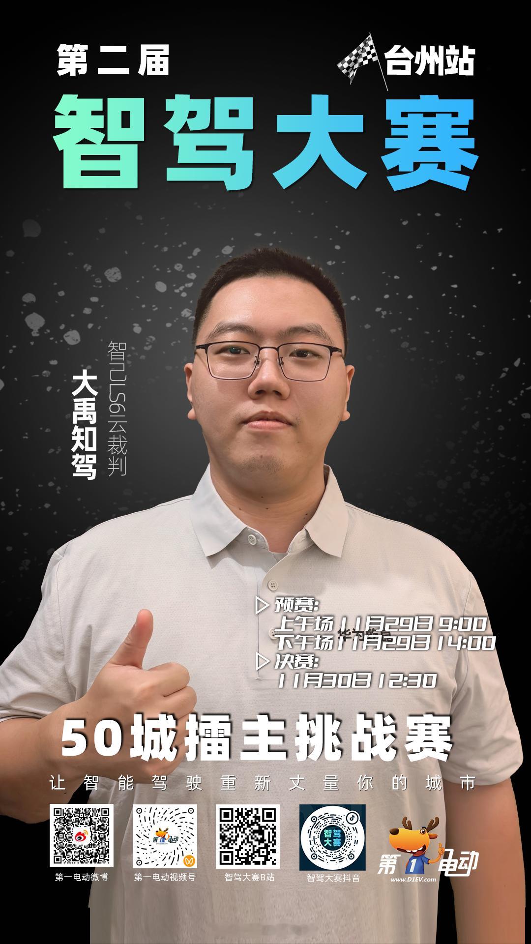第二届中国智驾大赛台州站第二届中国智驾大赛 预赛云裁判阵容亮相!他们在云端盯着每一辆车的表现 所有判罚在线实时记录,我们邀请你一起“云监工”!11月29日上午场 · Momenta系四大车型 谁的表现最稳?裁判在线盯!仰望U7 → 云裁判:鲨鱼辣椒别克至境L7 → 云裁判:云海腾势N7 → 云裁判:X大帅小徐智己LS6 → 云裁判:大禹知驾👉 四款车型中,你猜谁的接管次数最少?11月29日下午场 · 华系 + 小鹏系线上裁判就位,见证每一秒!华系阵营:阿维塔07 → 云裁判:昌明 深蓝S09 → 云裁判:葛省城问界M8 → 云裁判:Mr_圆周率智界S7 → 云裁判:Vincent_YUAN小鹏阵营:小鹏P7 → 云裁判:万小白小鹏G6 → 云裁判:小叶说的挺对👉 华系四车混战,你觉得哪台车会被云裁判记下最少扣分?👉 小鹏内战,你站视觉派P7还是激光雷达派G6?云裁判共同见证他们不在车上,但在云端紧盯每一个细节:全程记录NOA退出、避让接管、无效变道…和车内裁判同步判罚,杜绝争议赛后回放核对,全程透明公开⏰ 赛事时间安排:预赛上午场:11月29日 9:00预赛下午场:11月29日 14:00直播平台:第一电动 微博 | 视频号智驾大赛 B站 | 抖音多位专业博主同步直播,经常不要错过!中国智驾战力天梯榜智能驾驶