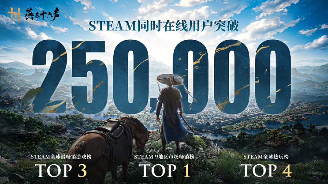 国服上线9个月,《燕云十六声》用户量突破4000万,今年三季度游戏月活跃用户数与营收双双创下新高。近期,《燕云十六声》国际服上线,以Steam同时在线用户突破25万、Steam全球最畅销榜前三的成绩,成为迄今为止欧美市场表现最为突出的国产武侠游戏。