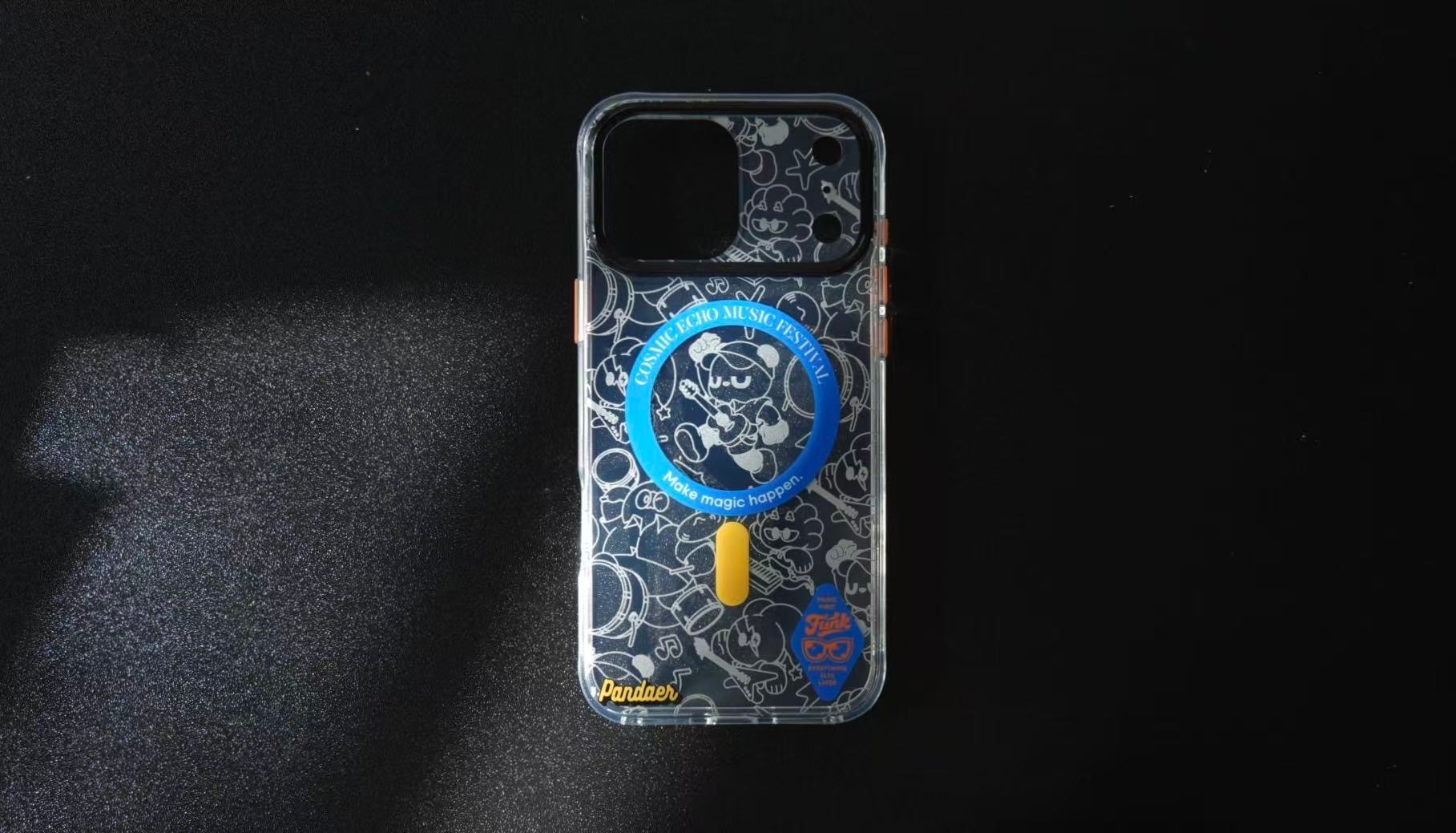 最近也是收到了魅族Pandaer系列的手机壳,整个壳子以透明壳为基础,外观用了各种卡通音乐元素进行装饰,中间MagSafe磁吸图案则用了蓝黄醒目颜色来了强调,整个壳子的握持感也接近裸机,拿在手里质感也不错,最近有换iPhone 17 系列的小伙伴不妨可以考虑一下这款手机壳!魅族pandaer秋季新品上新周