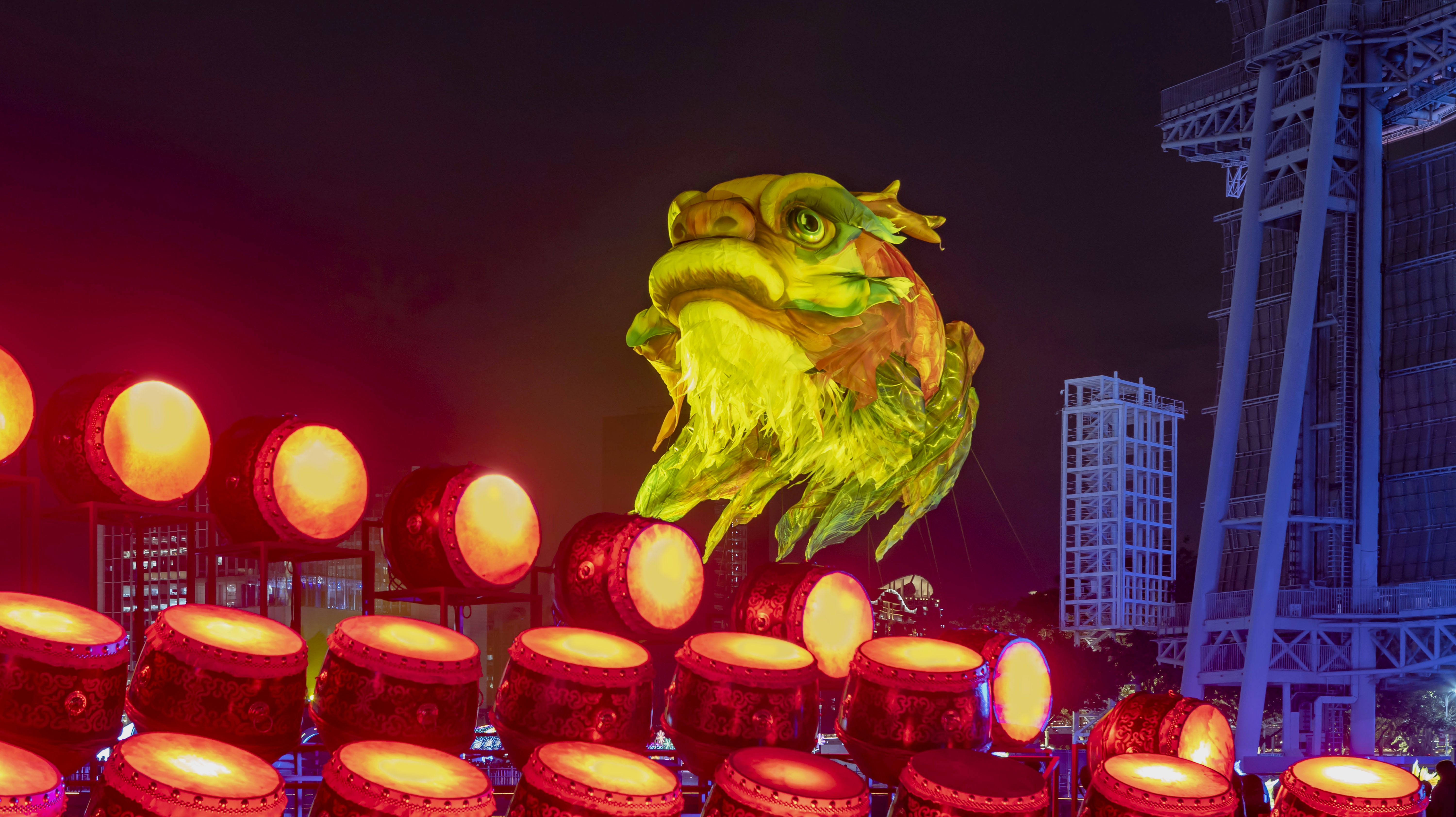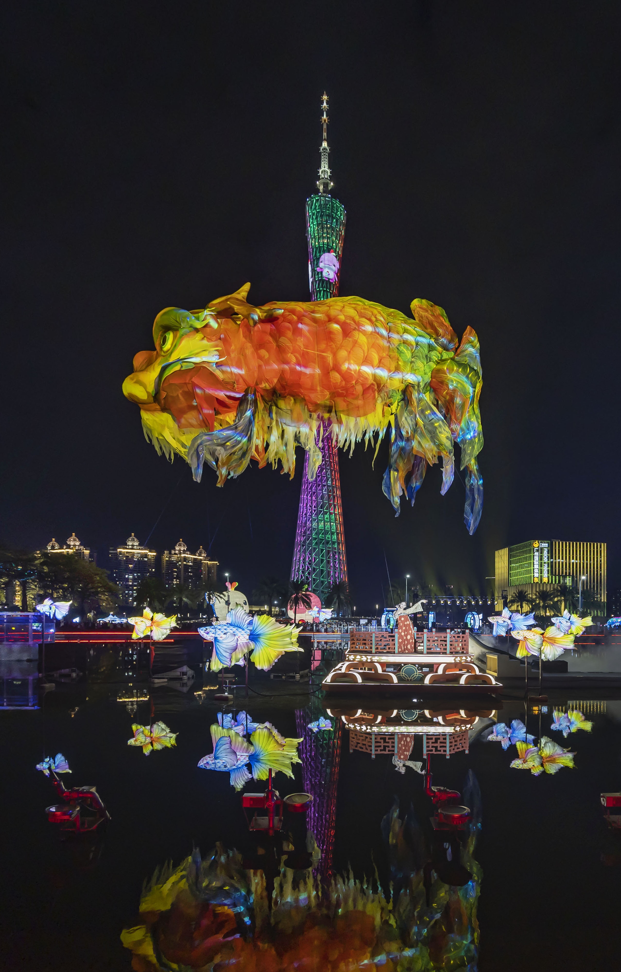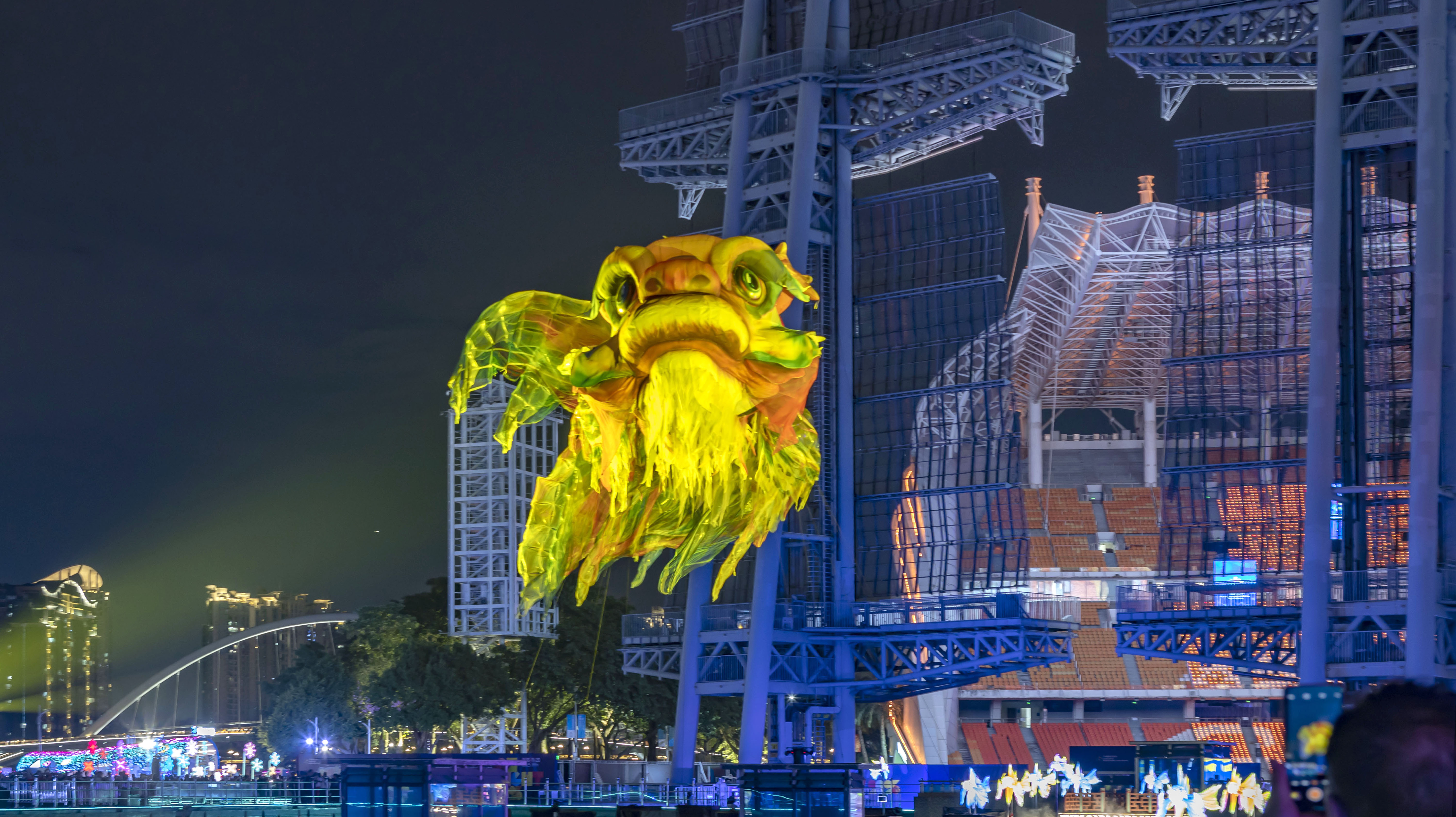 2025广州国际灯光节,把全运会开幕式展现过的“鳌鱼”,拿到海心沙主会场展出,市民可近距离欣赏到它的真容,看后人们赞口不绝,它那鲜艳夺目的色彩,随风灵动,特显了鱼的霸气。今届灯光节比往年简约,幸好有条“鳌鱼”镇场。