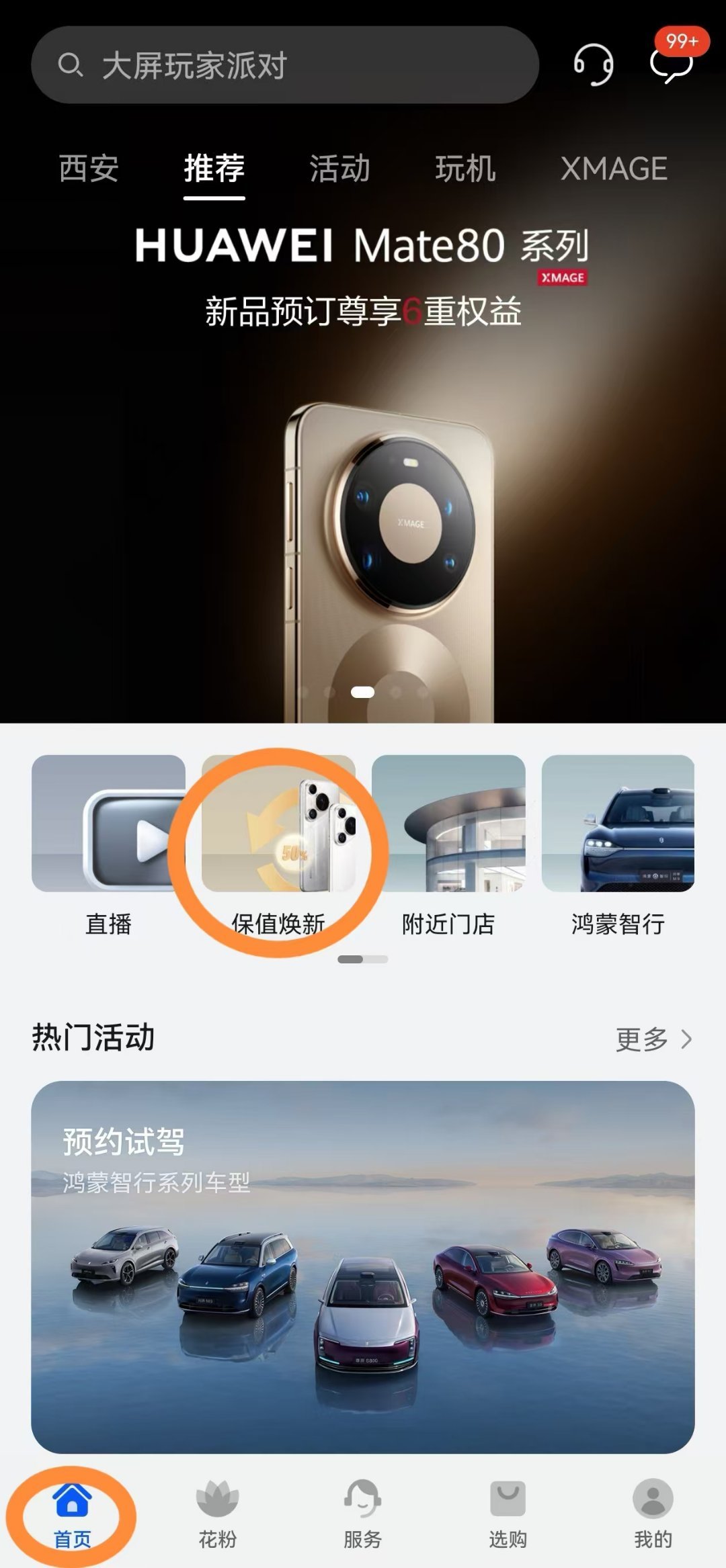 Mate80系列保值焕新履约开启路径了解一下:打开我的华为APP—首页—保值焕新