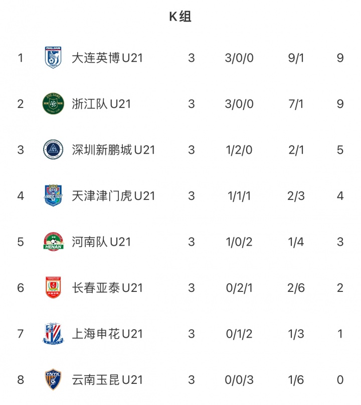 直播吧11月28日讯U21联赛决赛阶段K组第3轮,19岁刘诚宇驰援申花U21队,但申花U21队0-1遭到河南U21绝杀,三轮战罢1平2负位列K组倒数第二。