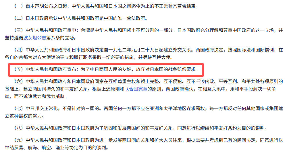 我在之前的文章里分析过,早在1972年,也就是中日两国建交的时候,中国就已经放下了历史问题,以及对日本的仇恨。因为,当时的“中日联合声明”写得很清楚:“中国政府宣布:为了中日两国人民的友好,放弃对日本国的战争赔偿要求。”