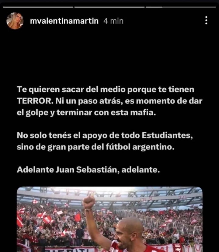 直播吧11月28日讯拉普拉塔大学生主席贝隆被阿根廷足协禁足半年,贝隆的妻子马丁在社媒发文怒喷阿根廷足协是黑手党,并顺带阴阳了梅西。