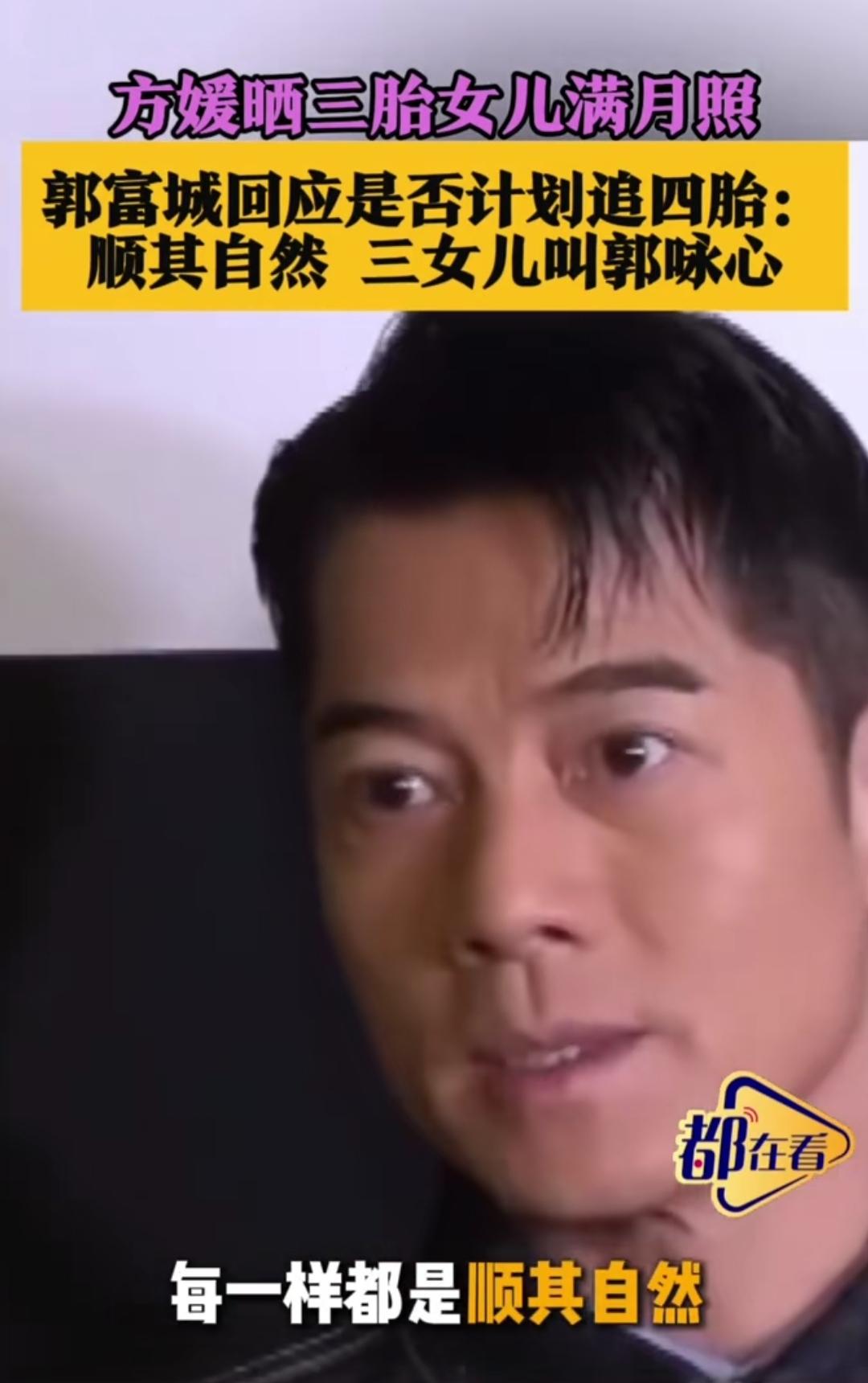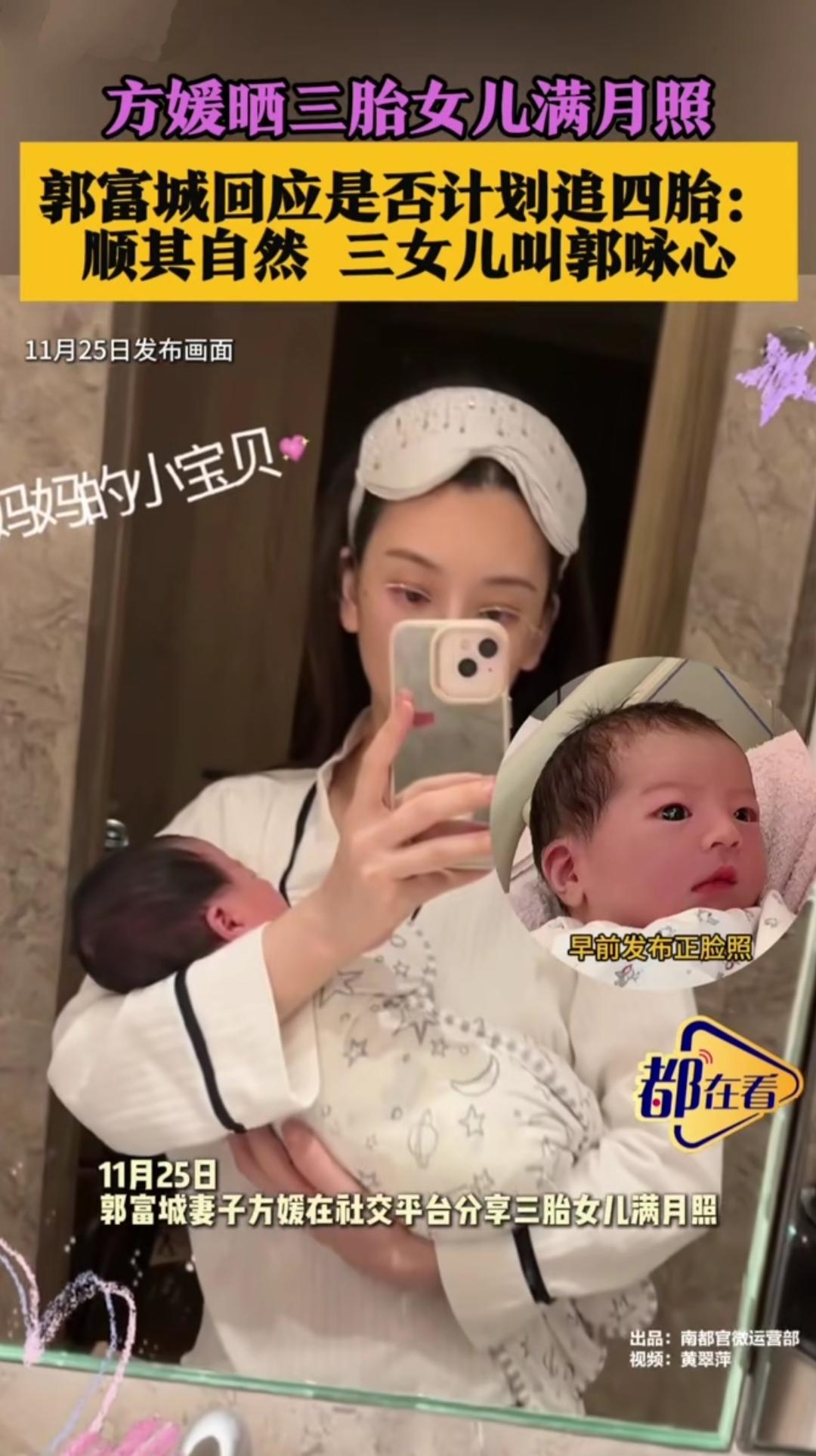 郭富城家又添小公主啦!方媛刚晒出三胎女儿满月照,宝宝叫郭咏心,软乎乎的超可爱,而方媛产后状态好到让人羡慕,穿紧身衣完全看不出刚生娃。 被问会不会追四胎,郭富城笑着说“每一样都是顺其自然”,这话一出网友都松了口气——终于不是“追儿子”的剧本了。 之前总有人盯着明星生娃,尤其像郭富城这种“老牌天王”,总被猜是不是想要儿子。但这次他的态度很明确:孩子是缘分,不强求性别。 方媛晒照时配文“妈妈的小宝贝”,眼里全是温柔;郭富城不刻意规划,只珍惜每个到来的孩子。这种松弛的家庭氛围,比“凑好字”更让人觉得暖啊。
