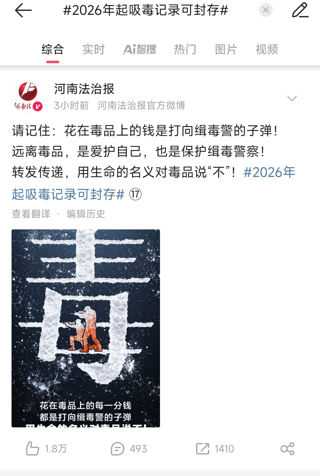 2026年起吸毒记录可封存 我反对南京大学李教授说的建议。既然违法,既然犯罪,