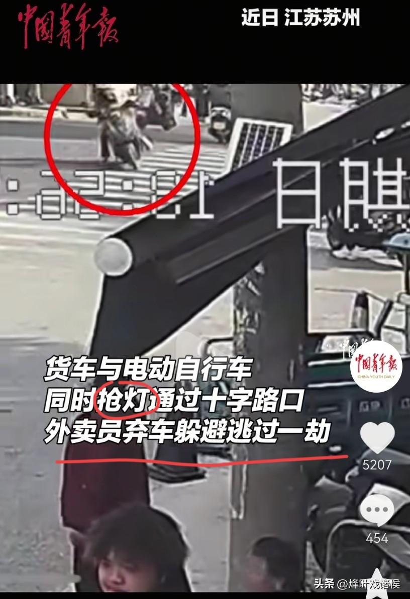慢一步都危险,要不是外卖小哥的奋力一跳,结局可能离开席都不远了。视频在网上被热议,事件的经过也终于被媒体采访到了,原来是双方都在抢灯通过。 发生地是在江苏苏州,时间是在11月25日的下午13:50分前后,当时一辆骑电瓶车的外卖小哥在通过斑马线。 行驶到路中间位置,突然被侧方来的油罐车吓了一跳,一个急步跳下了车,随后电瓶车跟油罐车擦着了,电瓶车的车屁股被顺带着了,还在地上转了个圈。 而在电瓶车倒地的那一刻,油罐车当时也紧急刹住车了,在那十字路口停了下来。 当时路口也有在等灯的市民,他们都亲眼目睹这一切。 一辆白色电瓶车看到小伙冲过来,立马刹了车, 而那位骑绿色三轮车的大爷,也是吓了一跳,呆呆看着这一惊险的一幕,估计他也在感叹,这外卖小哥真的是命大,再晚一点就是车毁人伤了。 那么,当时到底发生了什么呢?《中国青年报》终于把原因讲清楚了。 原来,油罐车和电动车都在抢灯通过十字路口,货车是出现亮黄灯的时候,并没有提前减速。 而外卖员看到红绿灯已经在跳灯了,以为油罐车会停,所以抢在绿灯亮之前过马路,后来才发觉不对劲了。 就是那么一瞬间,差点撞到了外卖员。 后来,外卖员去观察车子,油罐车的司机也下车了,好在整起车祸并没有太大的影响,电瓶车有一些损坏。 外卖小哥反应及时,腿比电动车还快,幸运躲过了车祸。 而对于那些反应慢的人来说,还真不知道会发生什么意外呢? 相信看了这个视频,大家都会心有余悸,出门在外,还是要注意安全。 同时也希望这个外卖小哥,以后不要在绿灯还没亮就想着通过路口,而货车司机也要提前减速,不要在路口抢黄灯,实在是太危险了。 在这起事件中,油罐车司机和外卖小哥都做的不对,但愿他们以后能吸取教训吧! 最后,大家身边有这样的人?