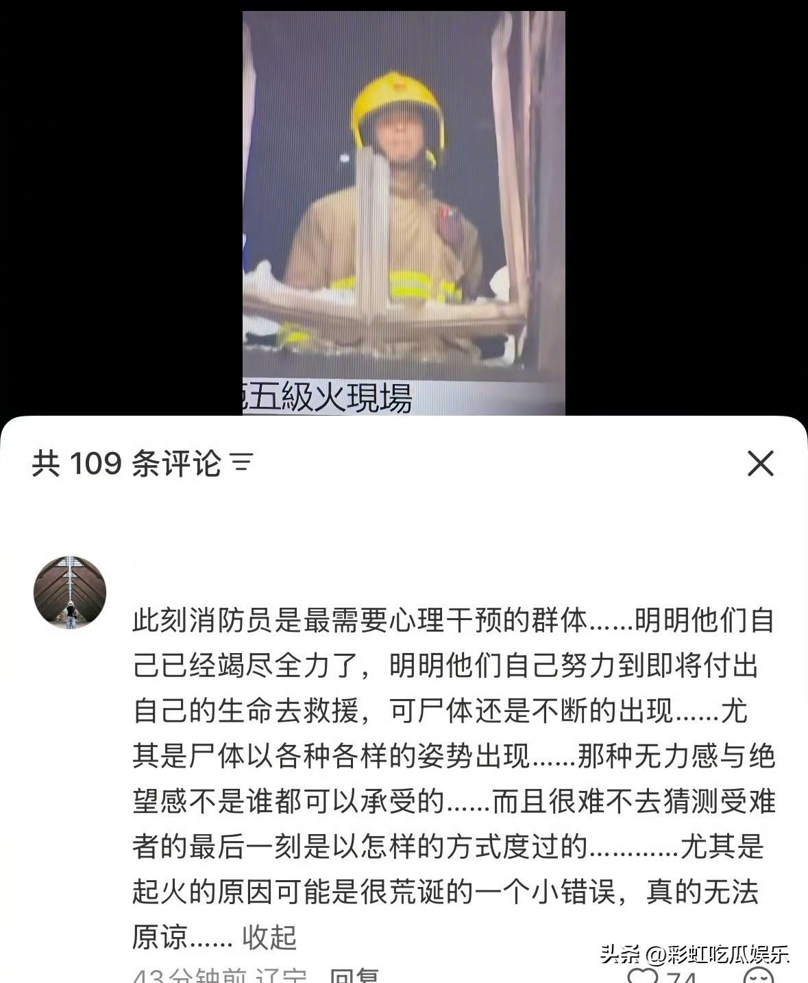 香港火灾已经有128人遇难,出动了700多个消防员,他们是逆行的天使。 他们是谁的孩子,又是谁的爸爸,是谁的哥哥,心疼他们,穿上这身衣服就必须为人民服务。 老公说不敢住高层了,18楼以上就没有云梯可以上去,最好是买18楼以下,停电什么的还能跑下去,而且我们小区每栋楼都有天井。 越来越多的人开始帮助支援他们,这世界破破烂烂,总有人修修补补。