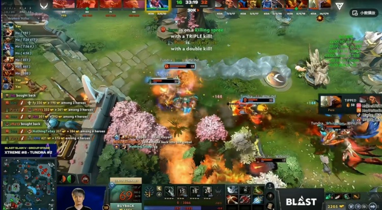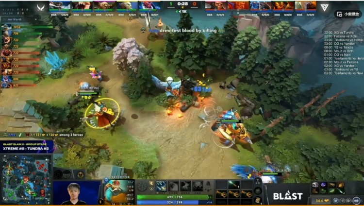 [10分钟]中路Tundra动手NTS獣结果直接被反踏,Fy百戏赶到支援反手0换2!随后xNova萨尔+Ame飞机野区两个大强杀33斧王!不过回头NTS獣中路踩眼,Tundra反打立马还了一波0换2!