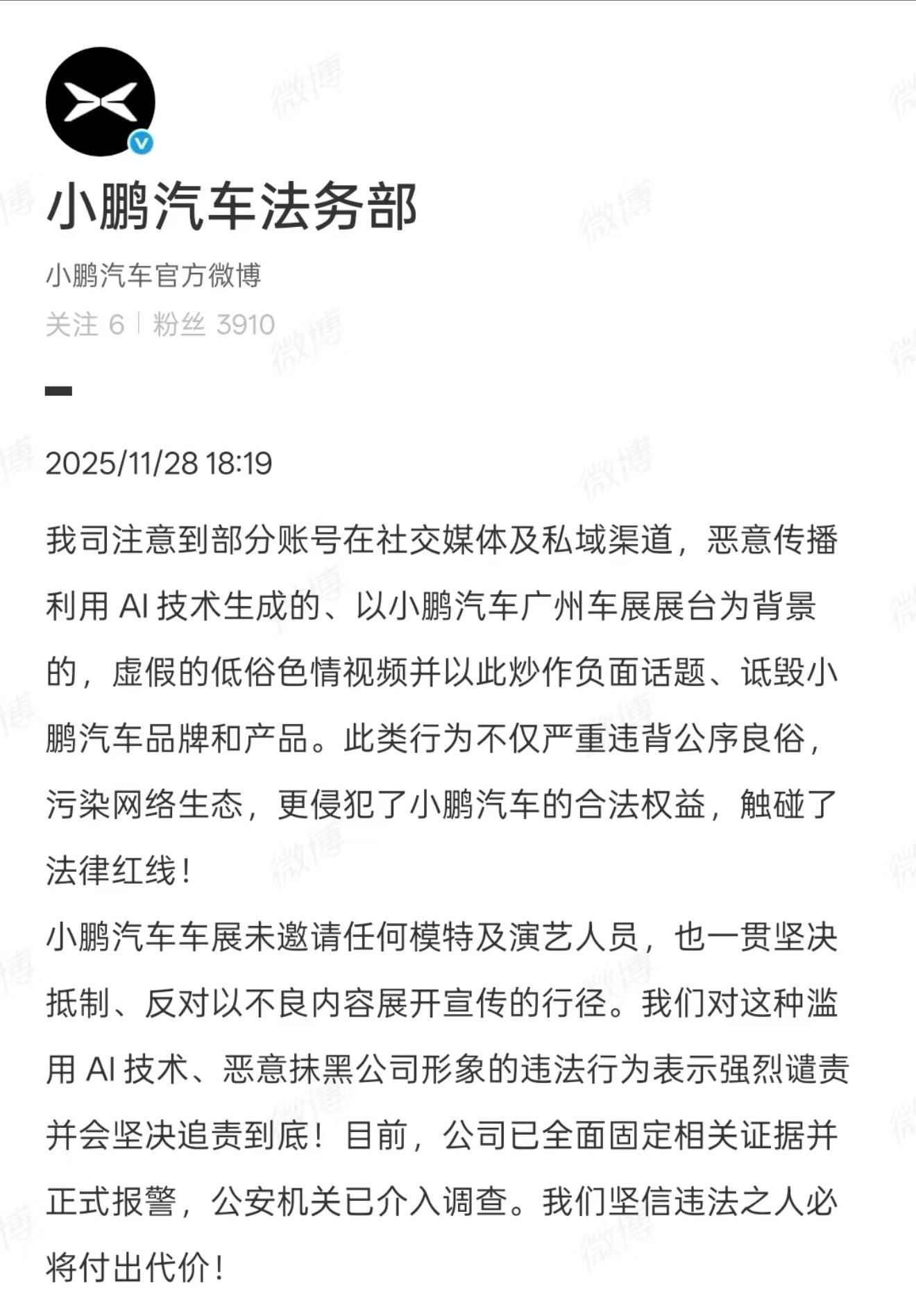 小鹏报警也太恶臭了吧?居然用AI生成的内容造谣抹黑品牌,这种事必须严查且追究到底!!