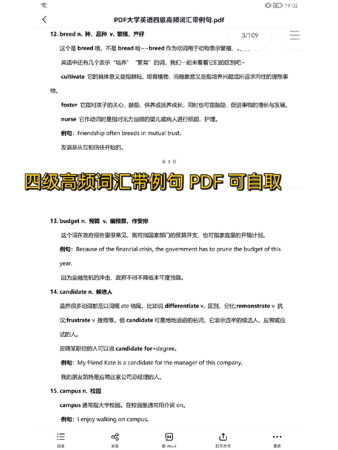 ✅单词:单词是四级的基础,把《四级词汇闪过》的高频词熟悉是重中之重。一共是578个,3天时间每天分着安排逐渐加深印象。