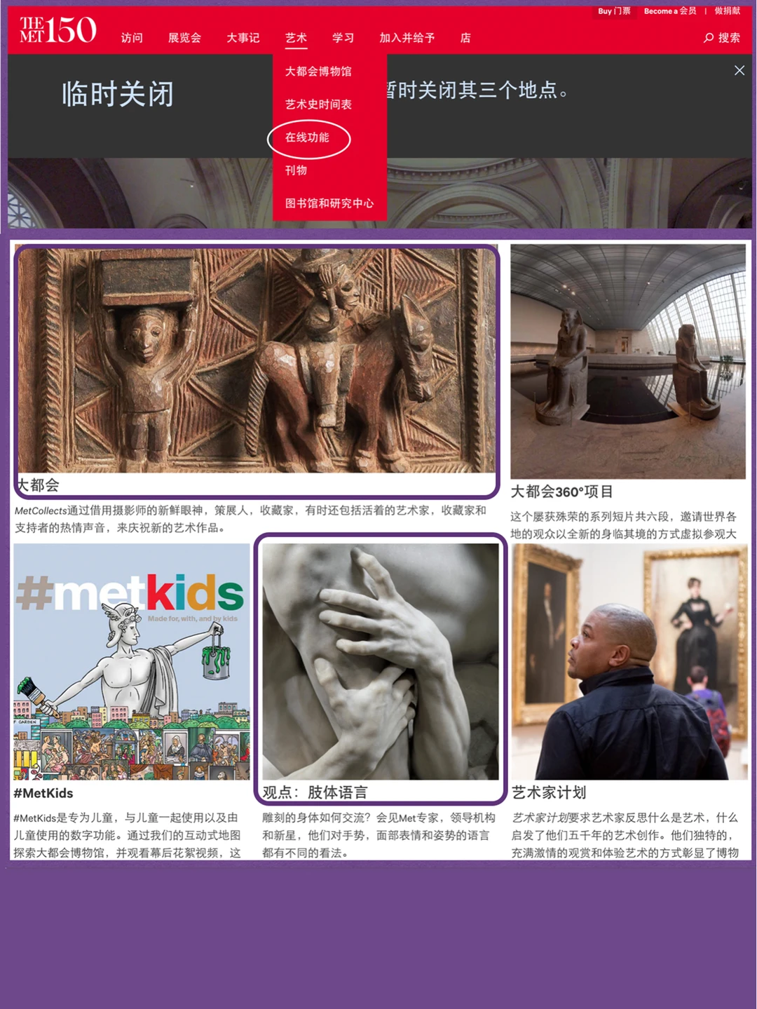 官网首页可以看到visit the museum from home,这里提供了11种探索方式,第2个为虚拟观展。