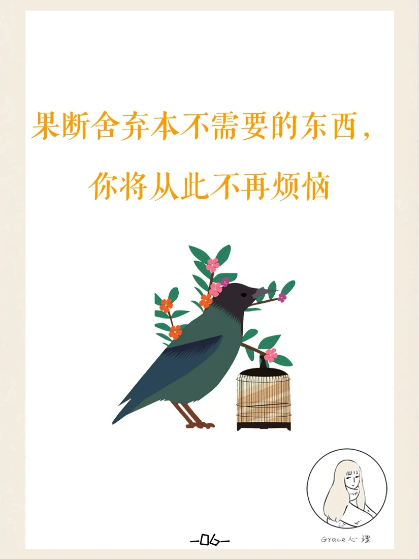 对于不需要和不适合自己的,要勇于放弃,敢于把心中的那只“鸟笼”丢掉。