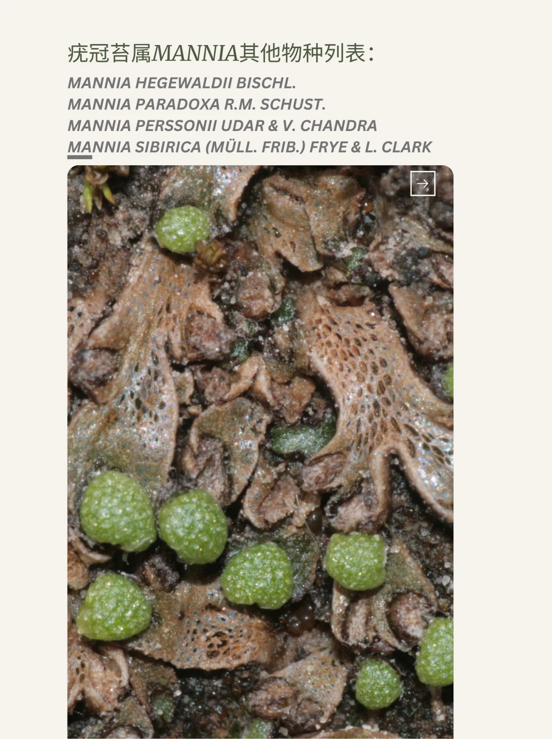 疣冠苔科Aytoniaceae疣冠苔属Mannia