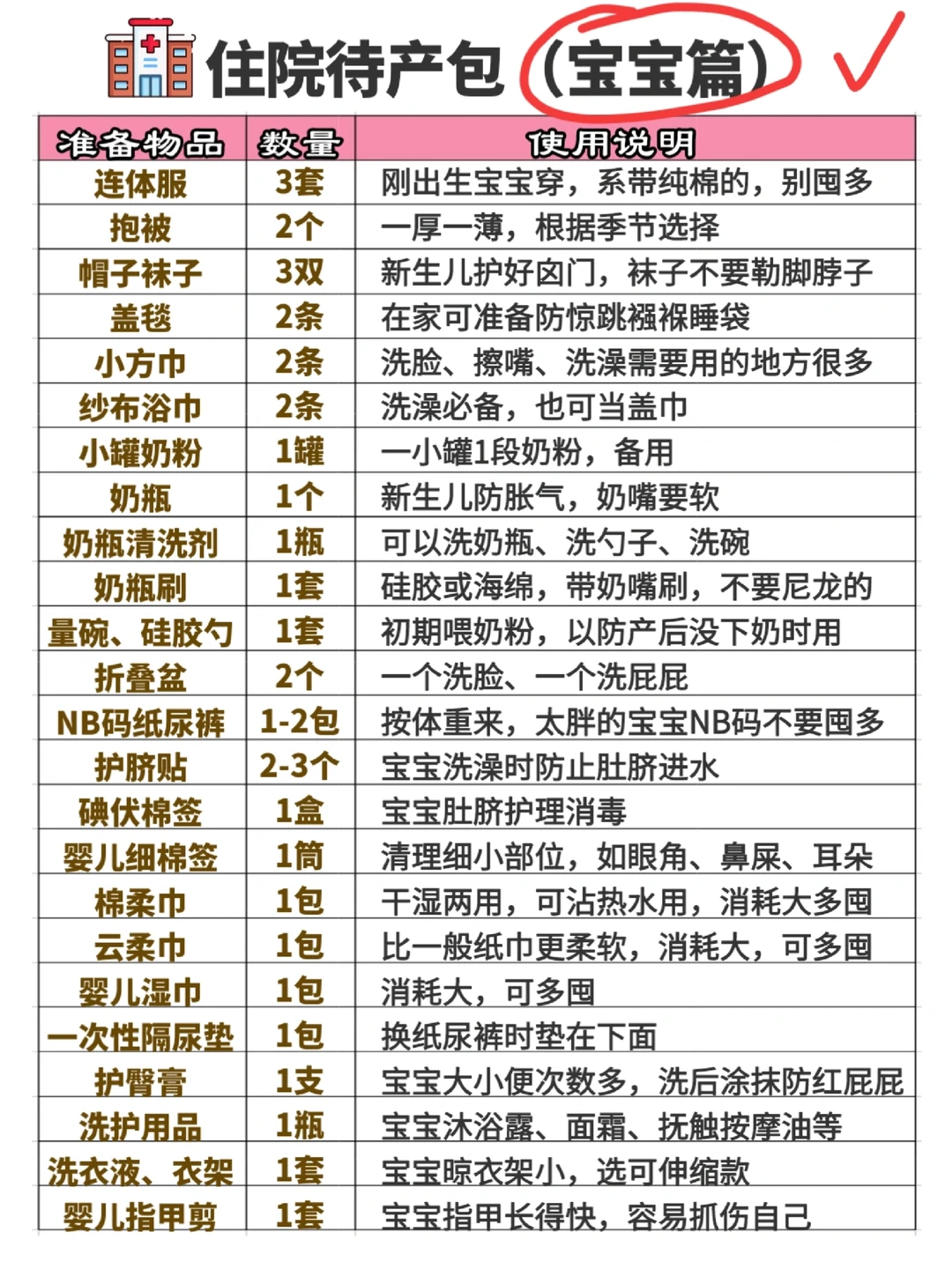 平时在妈妈群里经常交流,根据自己生完后的经验和妈妈群的各种吐槽,总结了一份超实用省心的待产包清单,💁🏻♀️一分冤枉钱也不用花!正在待产的麻麻们可以参考准备~