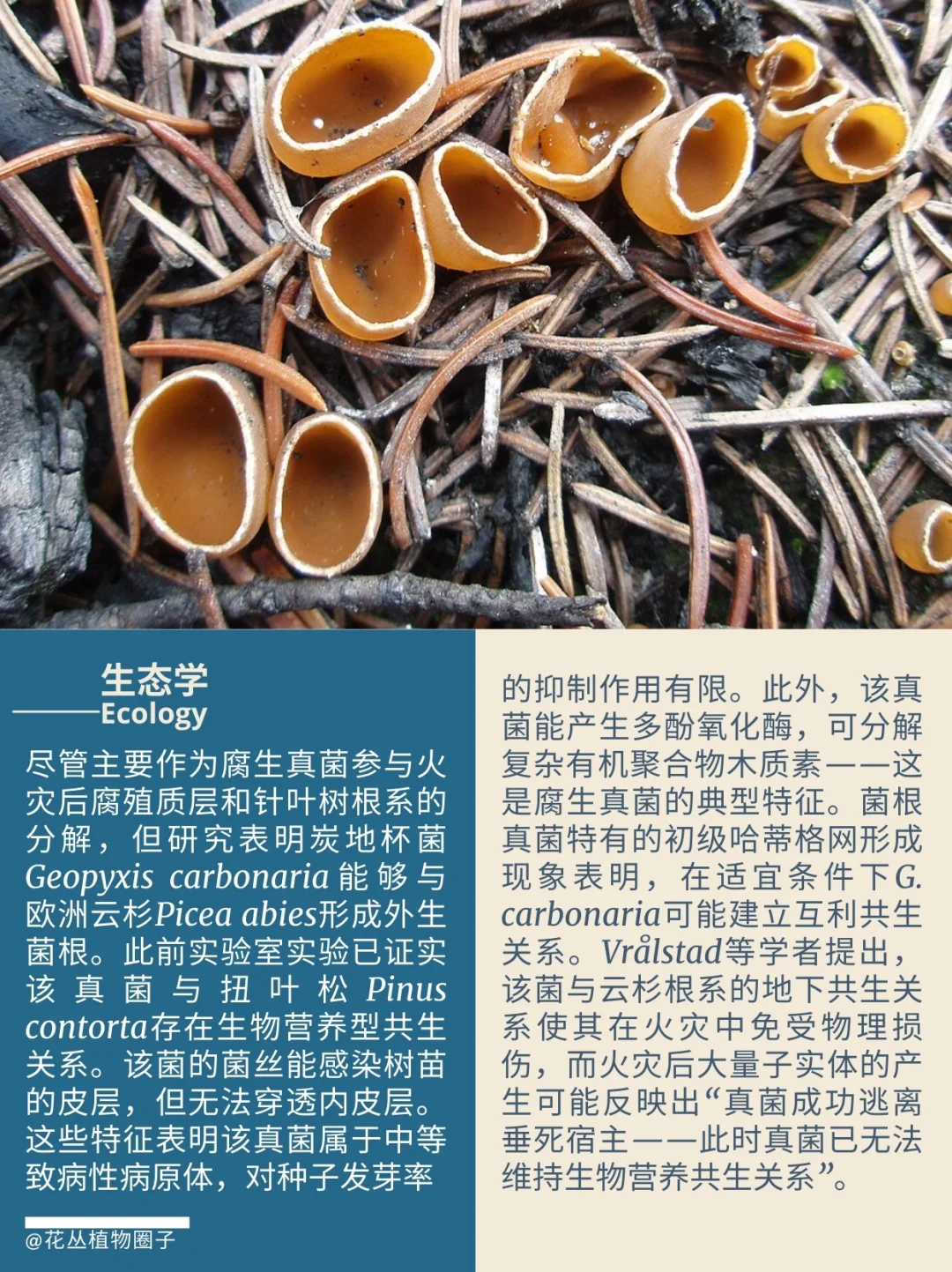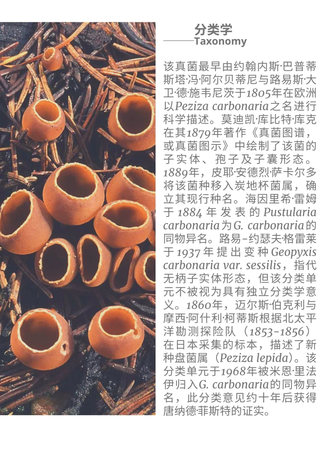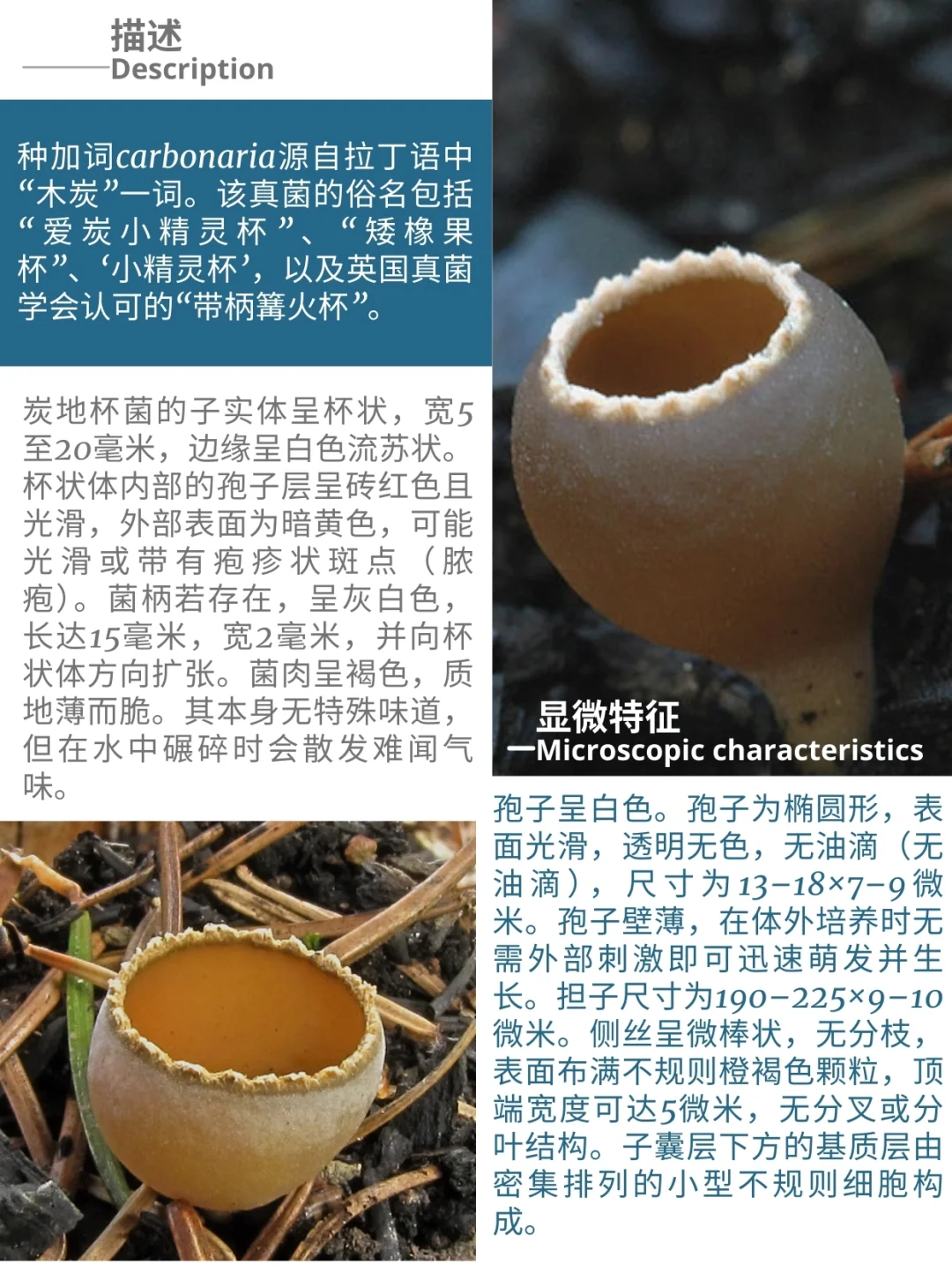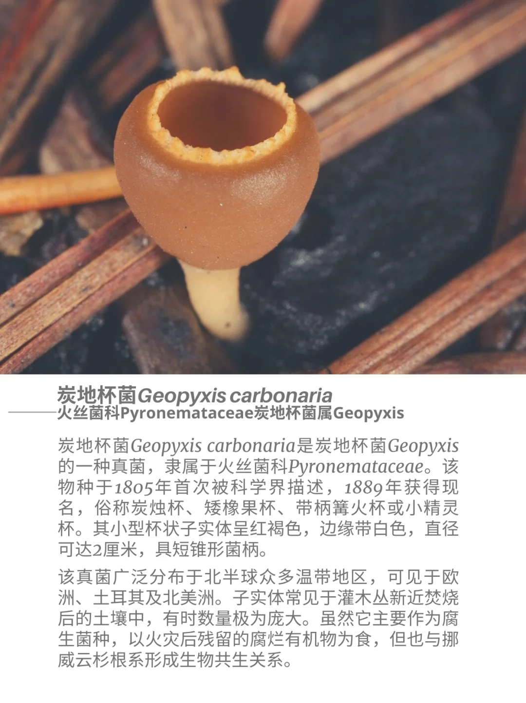 真菌 炭地杯菌 Geopyxis 火丝菌科 炭烛杯 矮橡果杯 小精灵杯 木炭 羊肚菌 炭地杯菌Geopyxis carbonaria是炭地杯菌Geopyxis的一种真菌,隶属于火丝菌科Pyronemataceae。该物种于1805年首次被科学界描述,1889年获得现名,俗称炭烛杯、矮橡果杯、带柄篝火杯或小精灵杯。其小型杯状子实体呈红褐色,边缘带白色,直径可达2厘米,具短锥形菌柄。