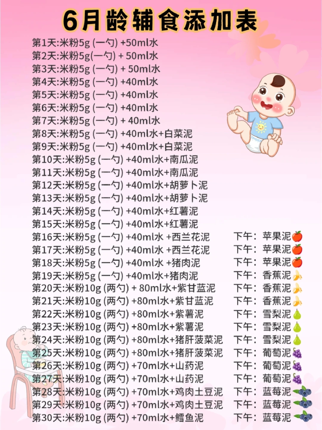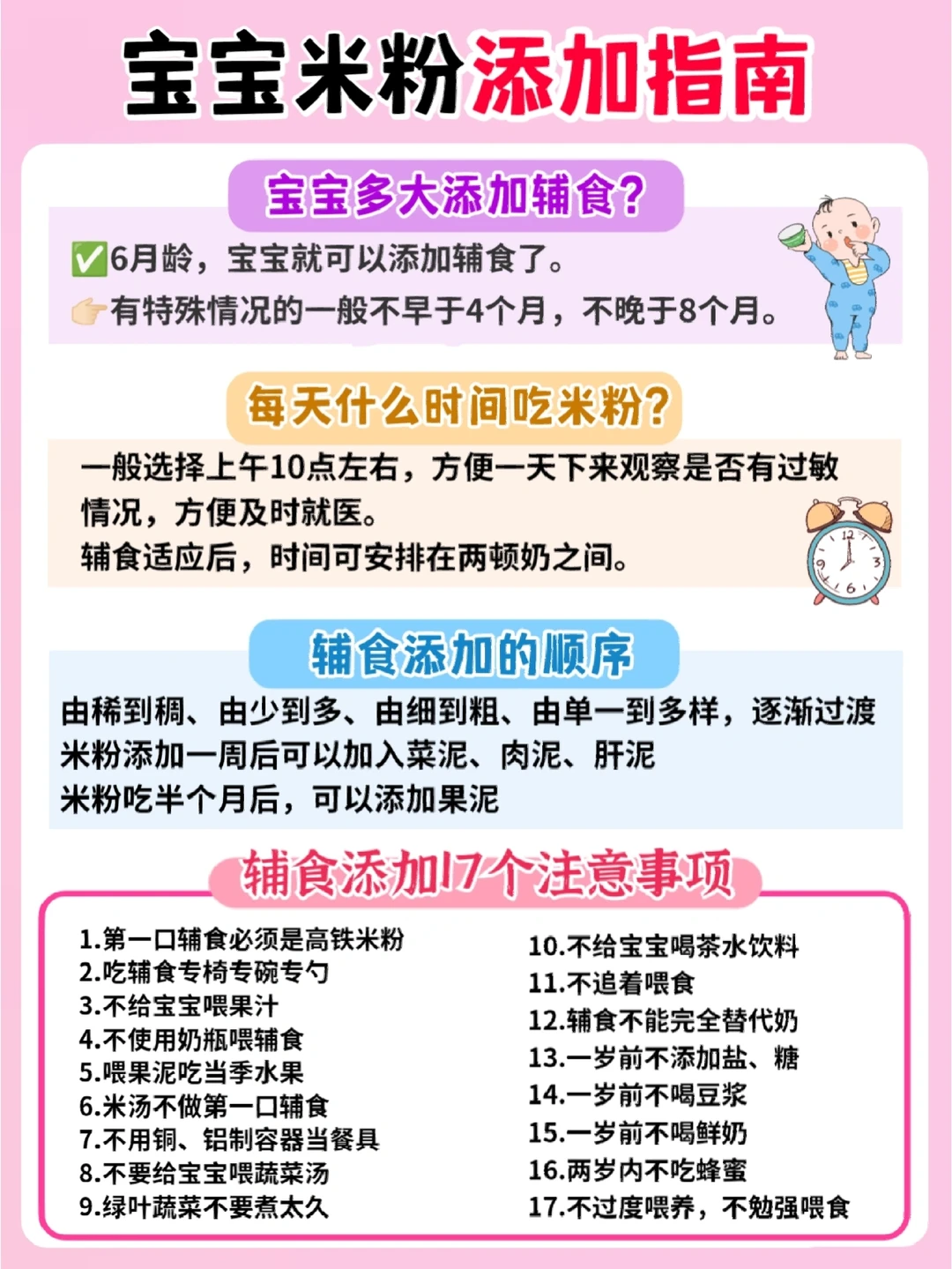 图片上整理了6月龄宝宝的辅食添加宝宝,照着做,不会错!轻松get辅食添加攻略!