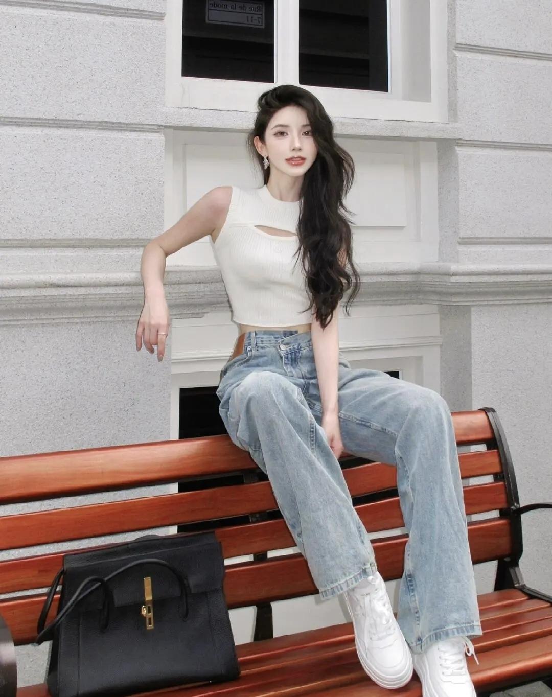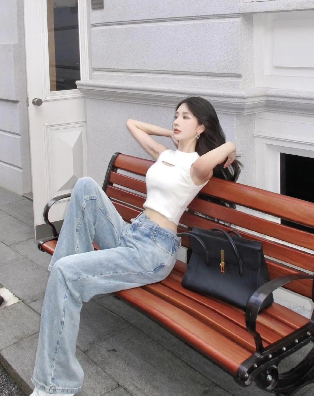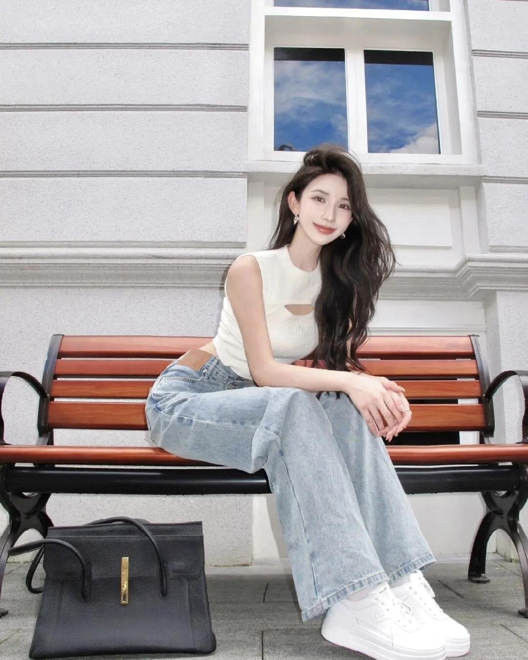 长椅接住放空的午后,白衫和牛仔裹着松弛的风,包包里装着没看完的诗集。阳光刚好,不用赶时间。