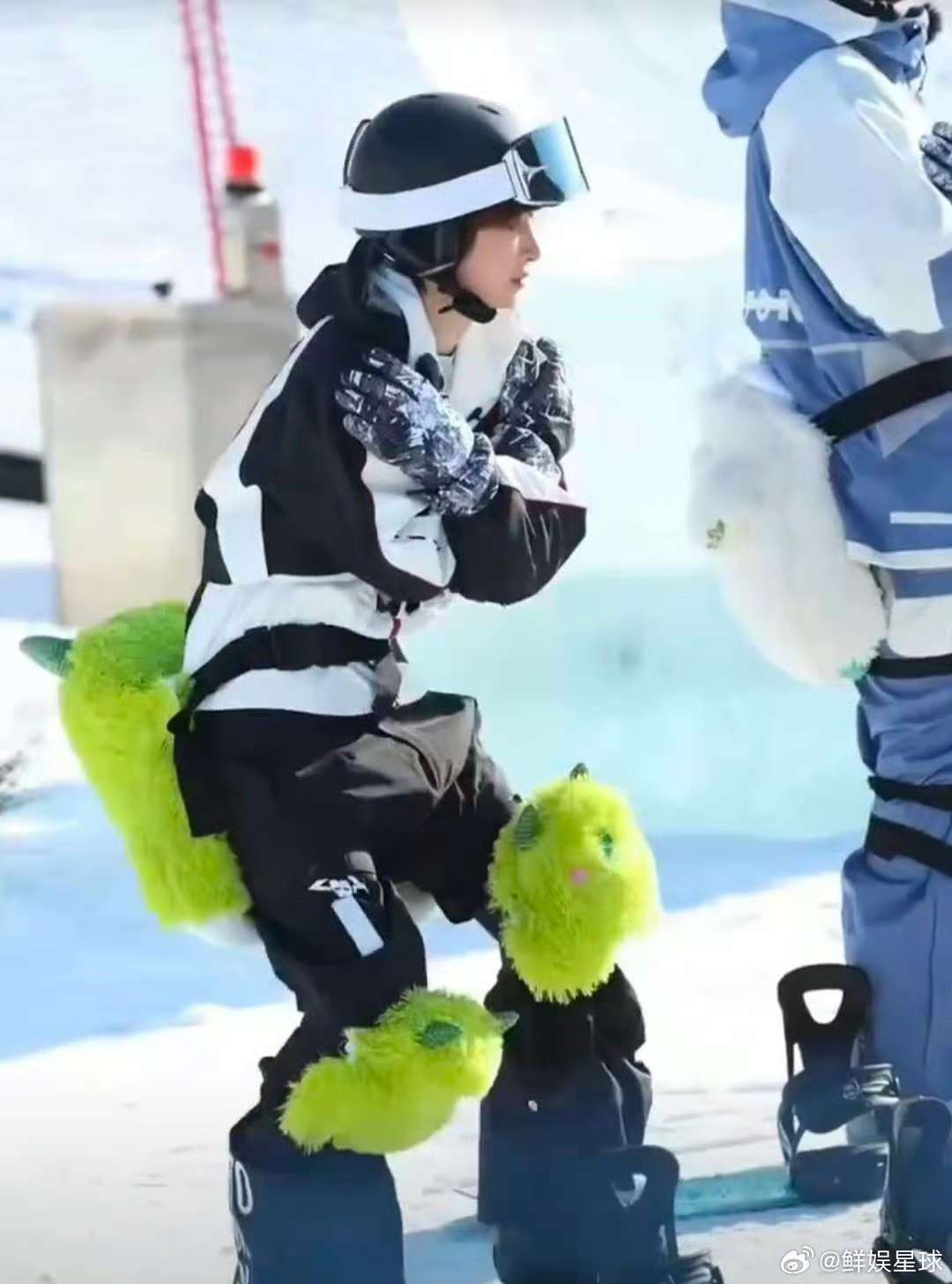 刘宇滑雪热身也不忘了比love你好星期六 刘宇滑雪热身太逗趣啦!戴着绿色独眼娃娃超俏皮,左右练习超投入,想优雅坐下却摔了个“love”模样,自己爬起超可爱,反复刷!刘宇