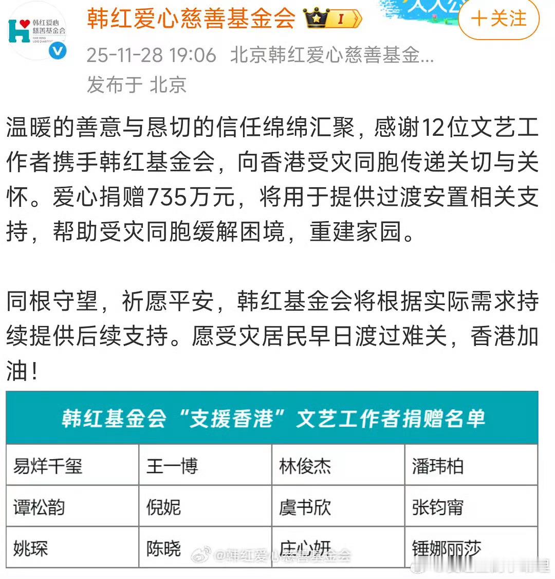 明星捐款 感觉事情走向越来越诡异了,什么时候明星捐款也要拉表被审判了,捐款变成了饭圈打架的工具,本来就是做好事,连严重的事故捐款都要被阴谋论,不论数额多少只要捐了的艺人都值得被夸赞啊!