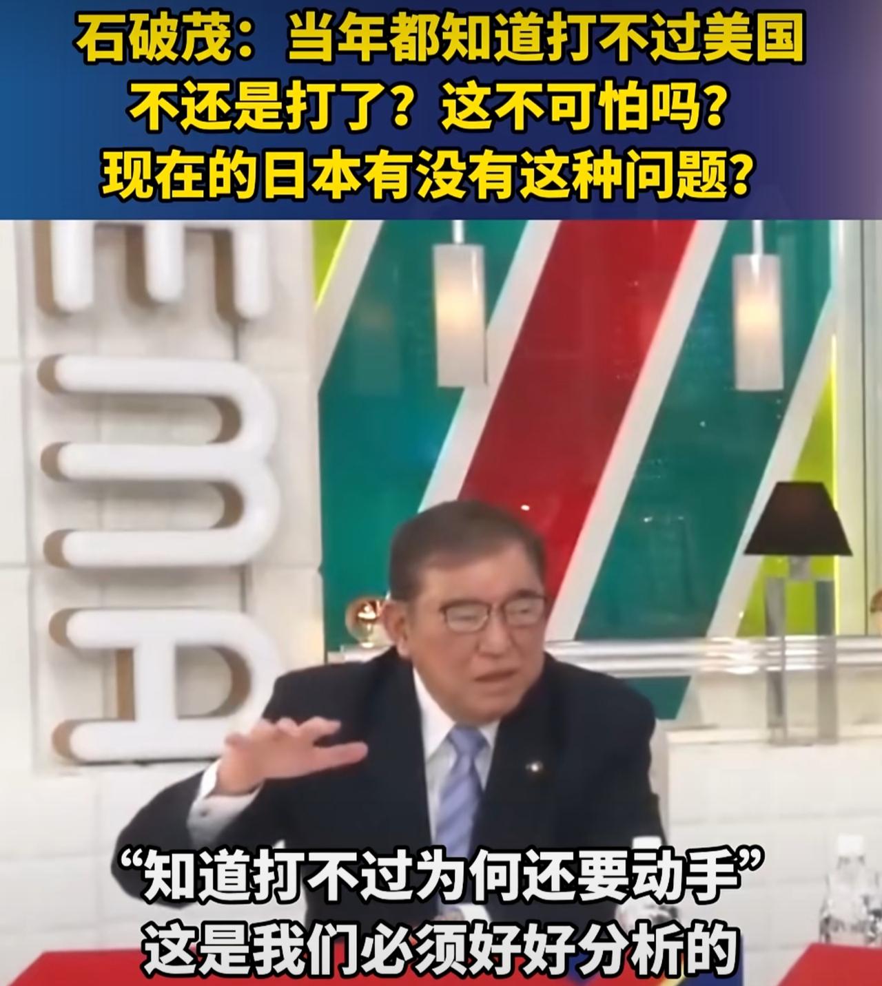 石破茂在电视节目上回顾二战时说,当时大家都知道日本是不可能打败美国的,两国国力相