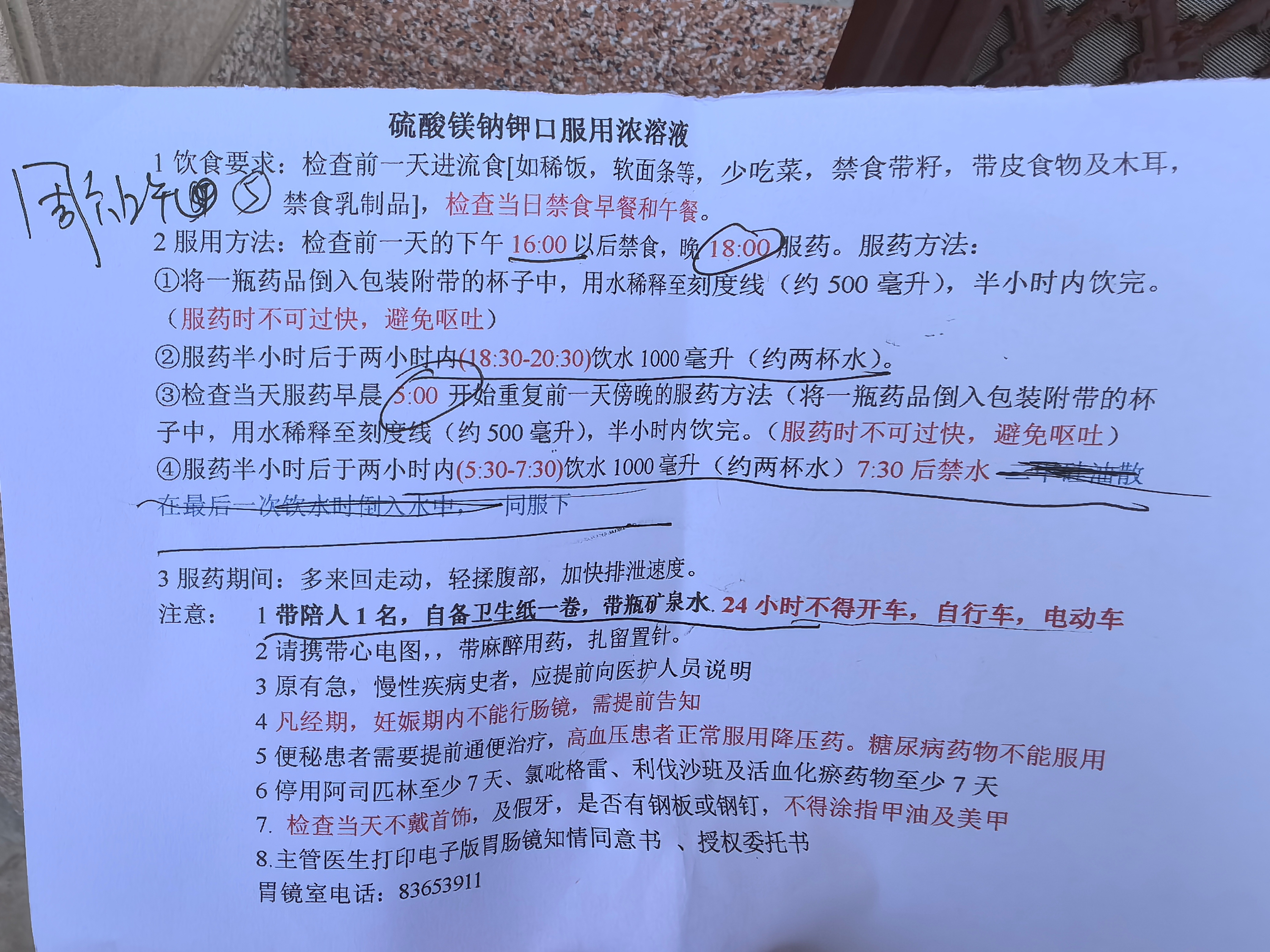 两年多没体检了,今年忙得拖到年底,28日做了个全面检查,听朋友建议,还预约了29日的胃镜,肠胃有问题的话,很难察觉到,35岁也该做一次了,担心呕吐便选择了无痛胃镜,价格稍微贵一点,但有医保统筹基金报销,总共花费两千多,个人承担六百多,医保账户刷了五六百,统筹基金付了一千多。个人建议,还是要把医保交上,尤其年纪大了随时能用得到,医保账户每年消费满200,就有2000元额度的基金报销额度,不管用不用,每年都会更新。为了做胃镜检查,白天中午吃完饭,就开始禁食,下午开始喝硫酸镁钠钾口服液,用于清肠胃,结果从傍晚到现在,一直拉肚子,直接化身“喷射战士”,还得不停喝水,避免身体脱水,定了凌晨5点闹钟,醒来还得继续喝一次,再不停喝水、上厕所。有点担心,明天怎么去医院,早知道如此强烈,在医院附近找个酒店了,医生建议不要开车,我觉得也不能打车,中途肚子不舒服,随时需要解决,还是得坐地铁,肚子这会儿还咕咕叫,感觉好像又来了,今晚注定休息不好。人生总有第一次,之前没做过胃镜检查,29号上午检查前还要打麻药,还需要人陪护,后续给大家聊一聊感受。