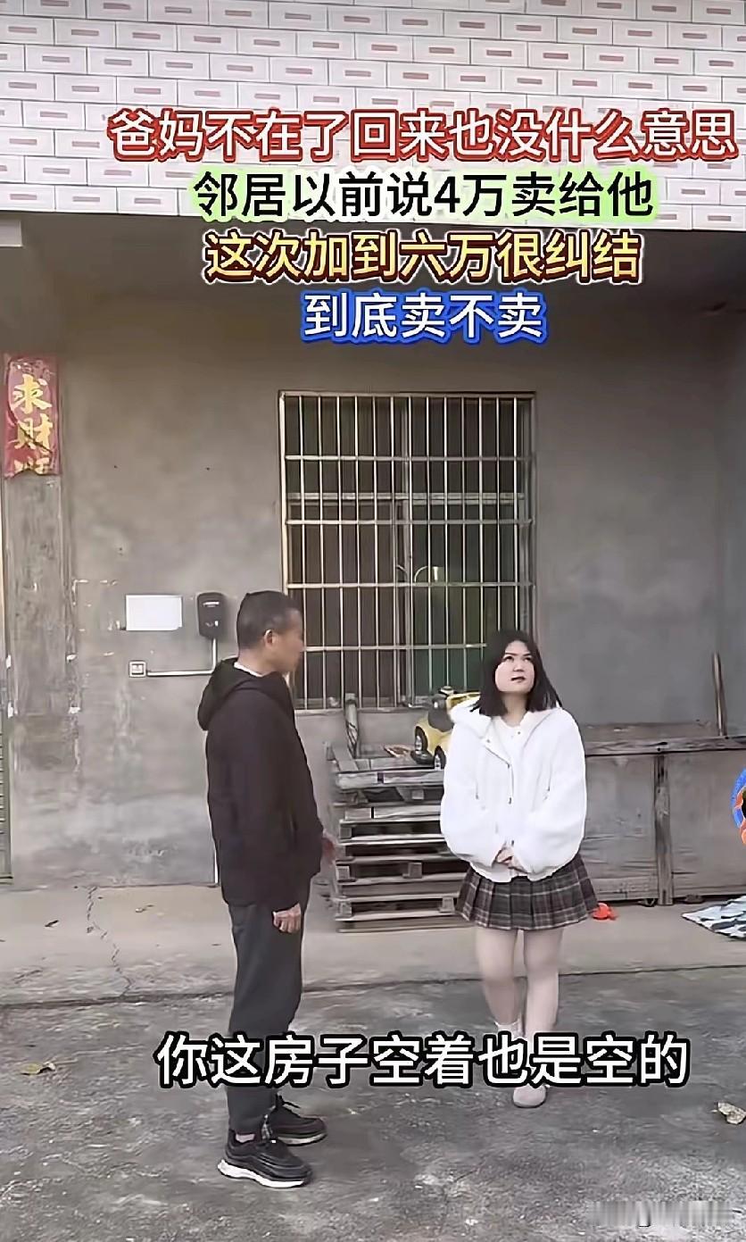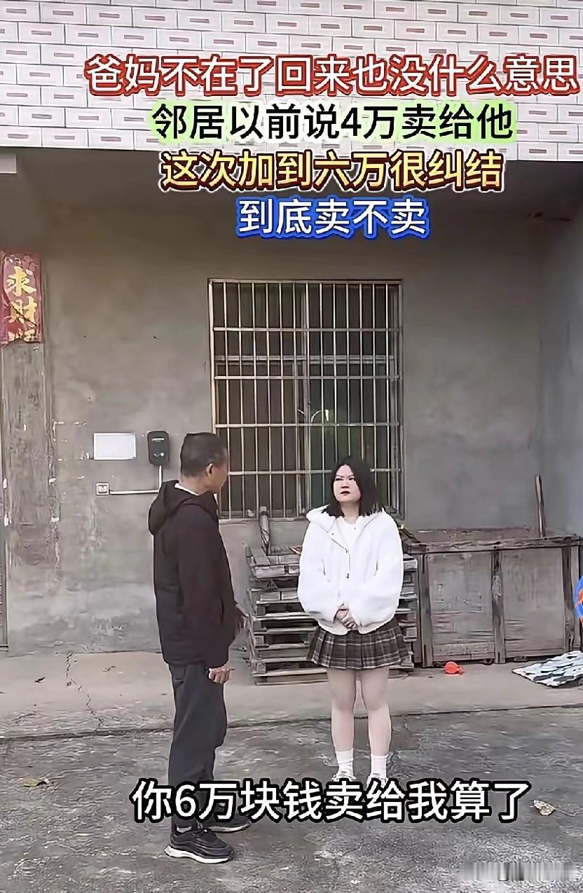 邻居是不是在趁火打劫?爸妈不在了,他急着加价到6万买我老家房,该答应吗? 爸妈一走就卖房,6万块就把家的记忆卖了,是不是太冷血? 爸妈留下的老房该不该卖?卖了就是败家子吗?