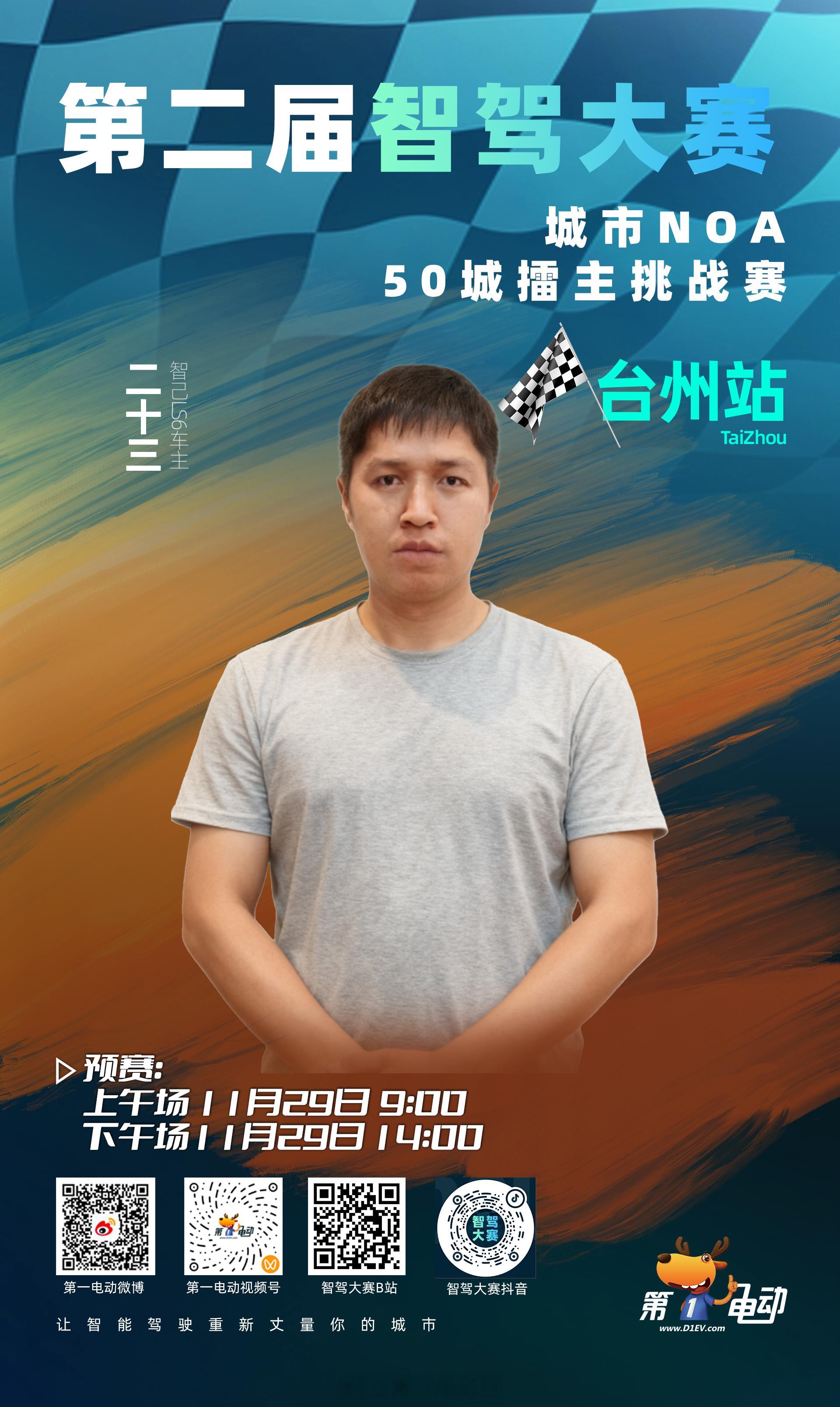 第二届中国智驾大赛台州站 第二届中国智驾大赛 上午场车主亮相|Momenta系较量进入倒计时!四位真实车主,驾驶自己的爱车争夺唯一决赛晋级名额!🚗 仰望U7 → 车主:李黄河Andrew🚗 别克至境L7 → 车主:汽车人老章🚗 腾势N7 → 车主:懒儿🚗 智己LS6 → 车主:二十三留言为你支持的车型加油!⏰ 直播时间:11月29日 上午9:00📺 直播平台:第一电动 微博 | 视频号智驾大赛 B站 | 抖音真实车主上场 Momenta 智能驾驶 👇 四位车主加爱车,你押谁晋级?