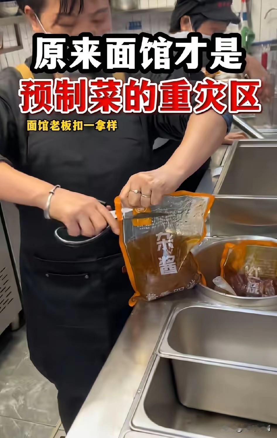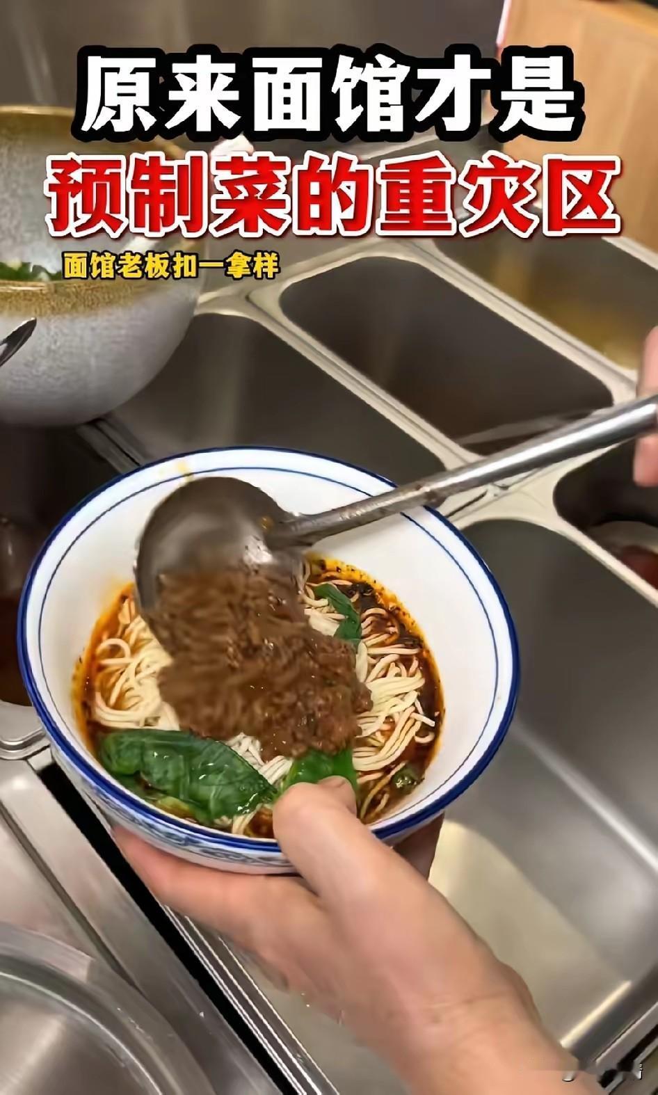原来面馆才是预制菜的重灾区, 一直以为预制菜都是很多炒菜, 没想到我们吃的各种面, 它们的酱汁和调味料, 都是提前预制的料包, 只需要把面煮熟, 最后挖一勺酱汁就好了, 不光是带汤的面, 还有市面上那些拌面, 都是将酱汁放一勺和面搅拌, 再挖一点咸菜, 拌一拌就成了拌面, 成本相当的低, 所以说外面现在的饭, 真是不敢乱吃, 毕竟预制菜吃多了对身体不好, 因为里面有很多的盐和添加剂, 大家有没有觉得出去吃饭会比较渴? 这就是其中的猫腻, 你还会知道哪些面馆是预制菜吗? 抖音美食 预制菜 预制菜单菜 预制加工菜 预制菜流程