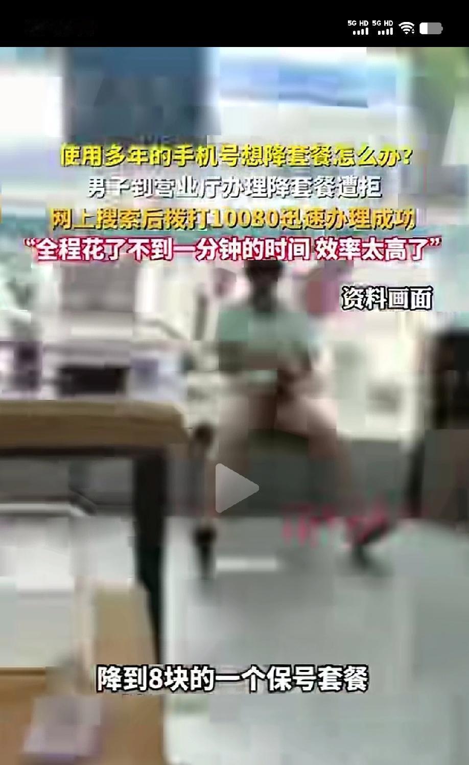 一分钟不到,移动套餐降到八块,信你才怪! 来来来,中国人不骗中国人,我这个原来一个月98块钱的移动大客户号码,历经N次降套餐,最终卡在了一个月18块钱的套餐这里,如今无论打10086还是上营业厅,都不能再降了。 网上到处都是成功降到八元保号套餐的案例,我想看看现实中有谁真把套餐降到了八块,是如何做到的,感谢你的分享。