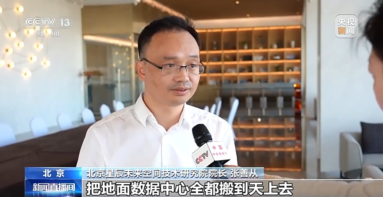 北京星辰未来空间技术研究院院长张善从:把地面数据中心全都搬到天上去,实现AGI(通用人工智能)所需要的算力能源,在3到5年之内,我们也会做一些应用。比如说我们的即时遥感服务,包括分钟级的气象预报服务以及马上就要到来的6G。