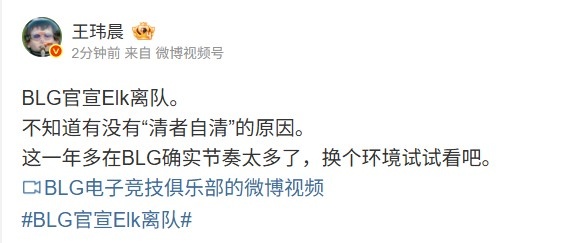 BLG官宣Elk离队。