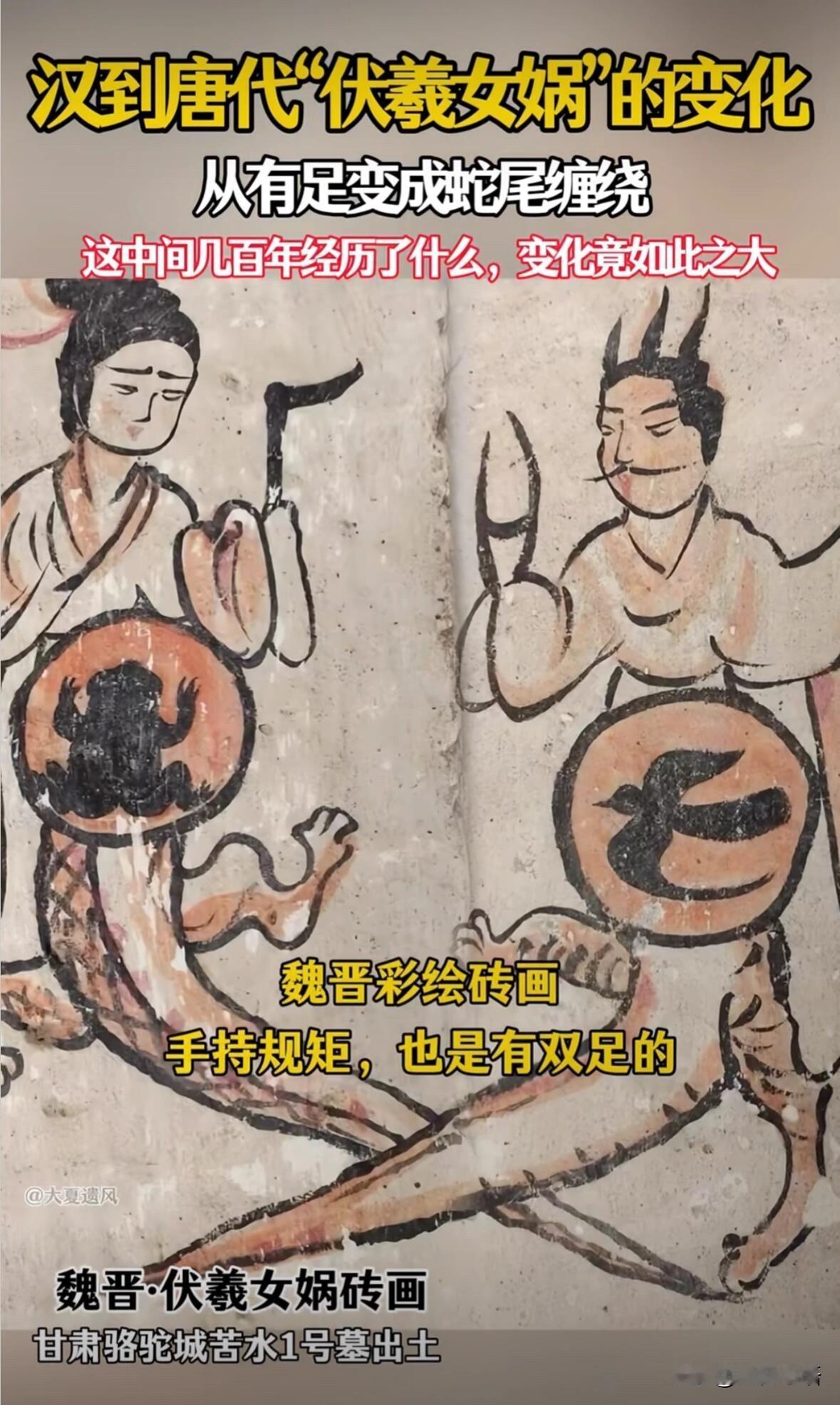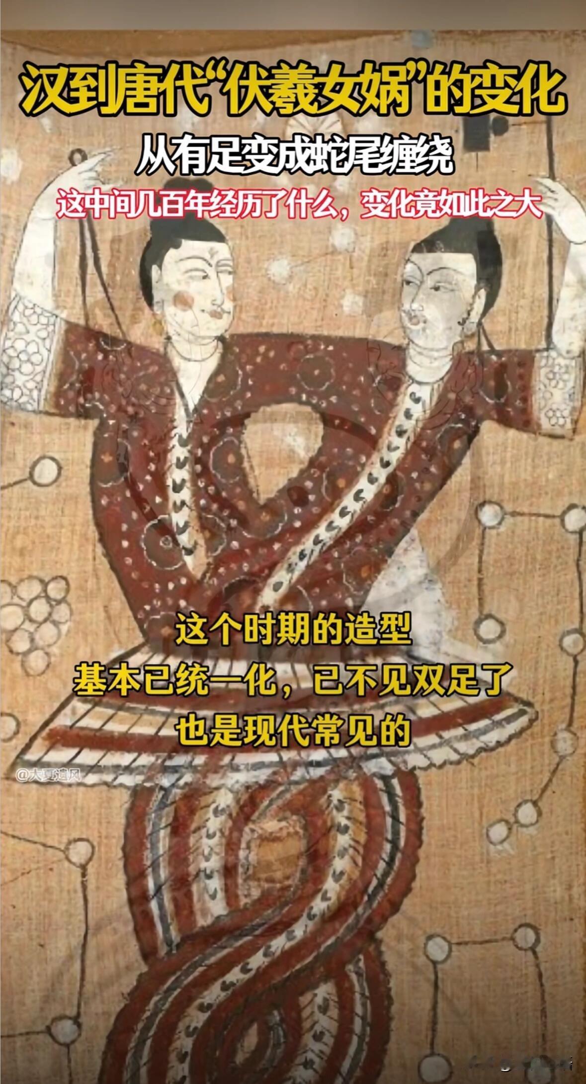 颠覆认知! 伏羲女娲的“蛇尾巴”根本不是蛇! 一直以为伏羲女娲就是人身蛇尾 直到看到篇考古笔记才惊掉下巴😭 原来我们都误会了上千年! 汉代出土的伏羲女娲画像石 人家明明是有双脚的! 手里拿的规和矩也不是随便摆的 竟是古人的测绘工具 天圆地方根本不是说天圆地方方 而是用圆规测天象、用尺子记周期 妥妥的古代“天文仪器”啊! 他们头上的太阳月亮 对应太阴历和太阳历 金乌定四季,蟾蜍记月份 连女娲的名字都和历法有关 原来老祖宗早把宇宙规律画进画里了 后来从汉到唐 “脚”慢慢消失,变成缠绕的“尾” 不是变成了蛇! 而是古人对行星轨迹的认知升级了 那是模拟行星运转的轨迹 也是苍龙星宿的运行路线 靠着这个记农时、定节气 才有了咱们“龙的传人”的说法 现在再看伏羲女娲图 哪里是神话传说 分明是老祖宗藏在石头上的宇宙密码 不得不服!古人的智慧真的绝了✨ 华夏伏羲女娲 伏羲文明