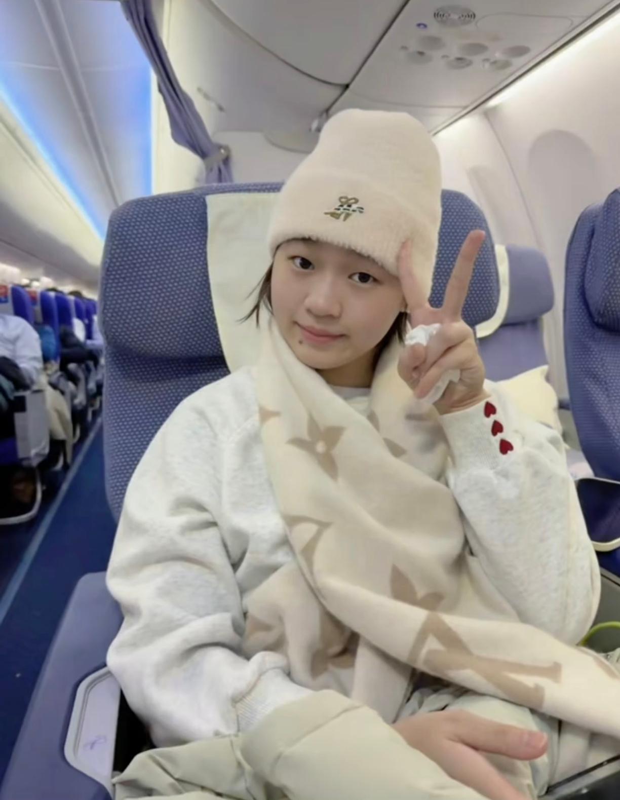 婵宝回家了,在机场被路人偶遇,要求合影时来者不拒,平易近人,妹妹成年后也会打扮了,一身白色休闲装配一顶可爱的绒帽,萌萌哒,真的越看越乖!(图片来源于网络侵删)