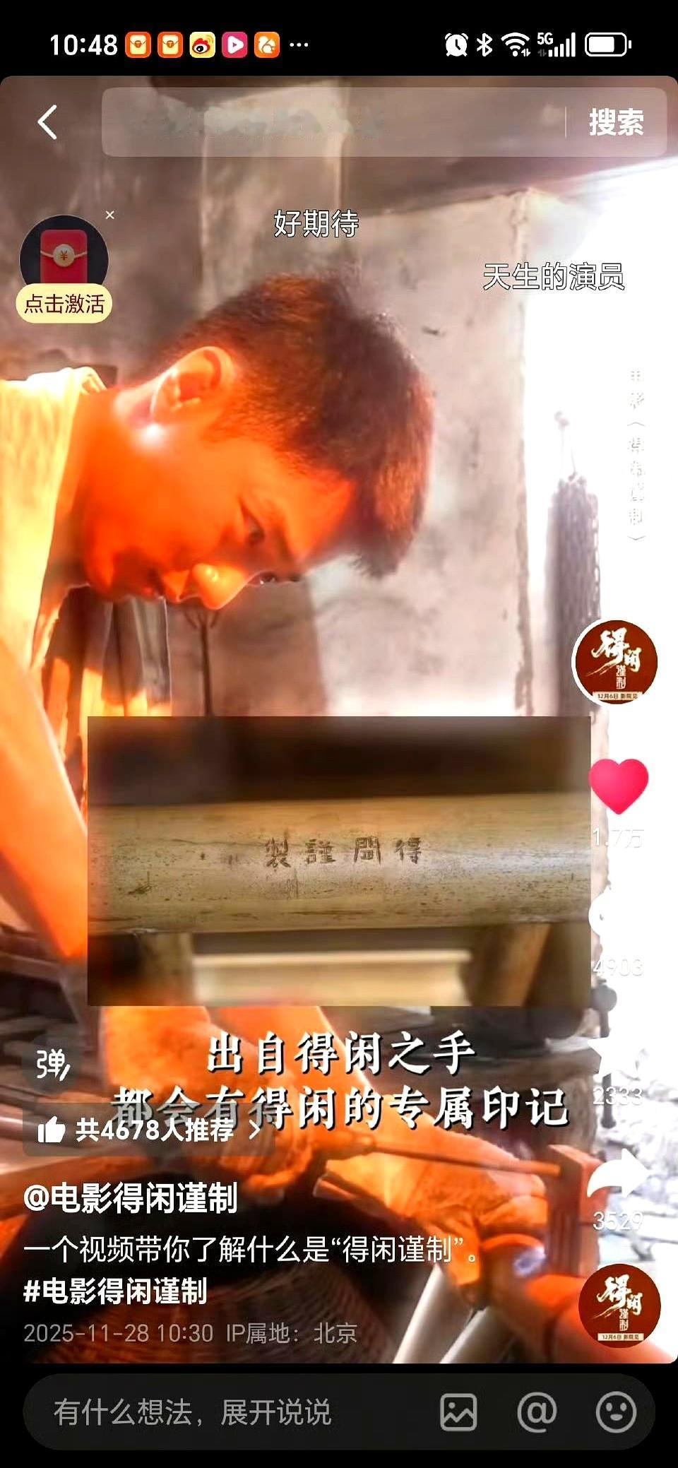 肖战新电影的周边,已经让我开始呲牙了。 正午阳光孔笙导演的战争片《得闲谨制》,定档2025年12月6日。肖战演一个叫莫得闲的钳工,故事背景是南京沦陷、宜昌失守那会儿。他本来就是个普通人,拖家带口往山里逃,只想保全家人,结果被逼着成了带领村民反抗的英雄。 电影里最带劲的设定,就是莫得闲这个手艺人,他做的东西上都刻着“得闲谨制”四个字。这不光是个签名,意思是“信得过的手艺”。乱世里头,再忙再乱,也要把活儿干好,守住自己的底线。这个感觉,真的绝了绝了。 所以粉丝们喊“想要呲牙”,就是想要这个印记的周边啊。想想看,刻着这四个字的木头书签、铜钥匙链,拿在手里多有质感。这不就是把电影里那种匠人精神,带到自己生活里嘛。片方要是真出了,我第一个冲。 电影还没上,一个印记就先火了。就等着看莫得闲这个小人物怎么撑起一片天。